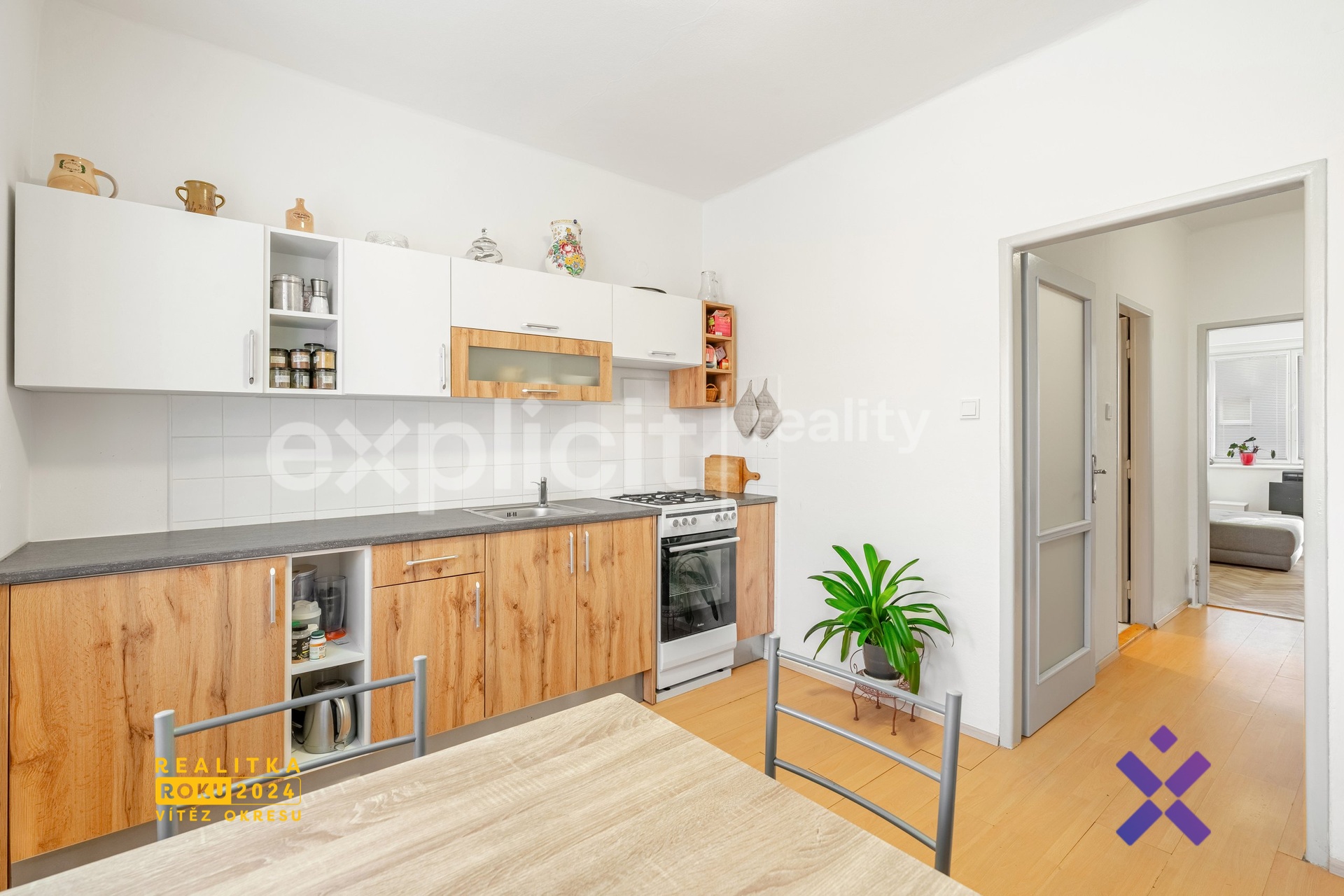 Byt prošel částečnou rekonstrukcí - k dispozici je nová kuchyňská linka vybavená plynovým sporákem. Kuchyňský prostor nabízí také místo pro jídelní stůl.