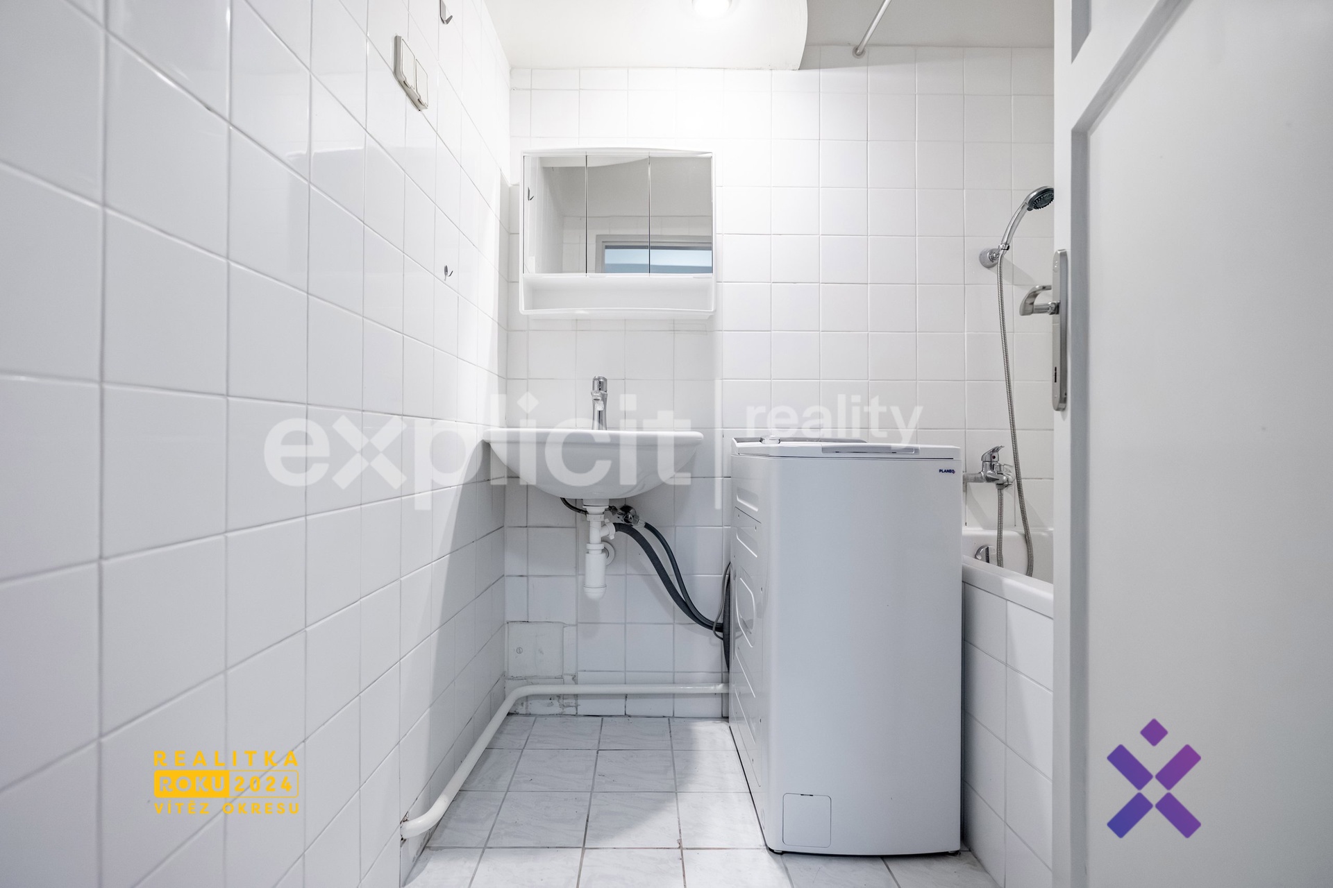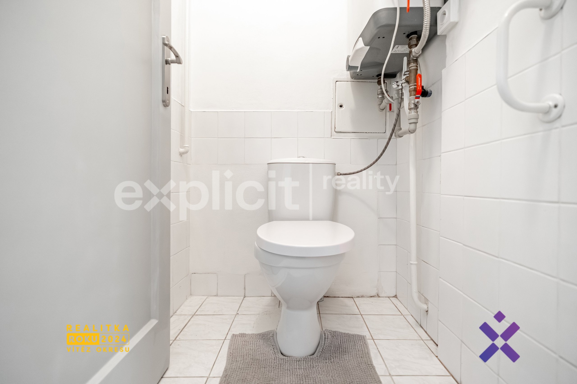 Koupelna s vanou je oddělena od samostatné toalety, což zvyšuje komfort bydlení. Velkou výhodou jsou dvě praktické špajzky, které poskytují dostatek úložného prostoru.