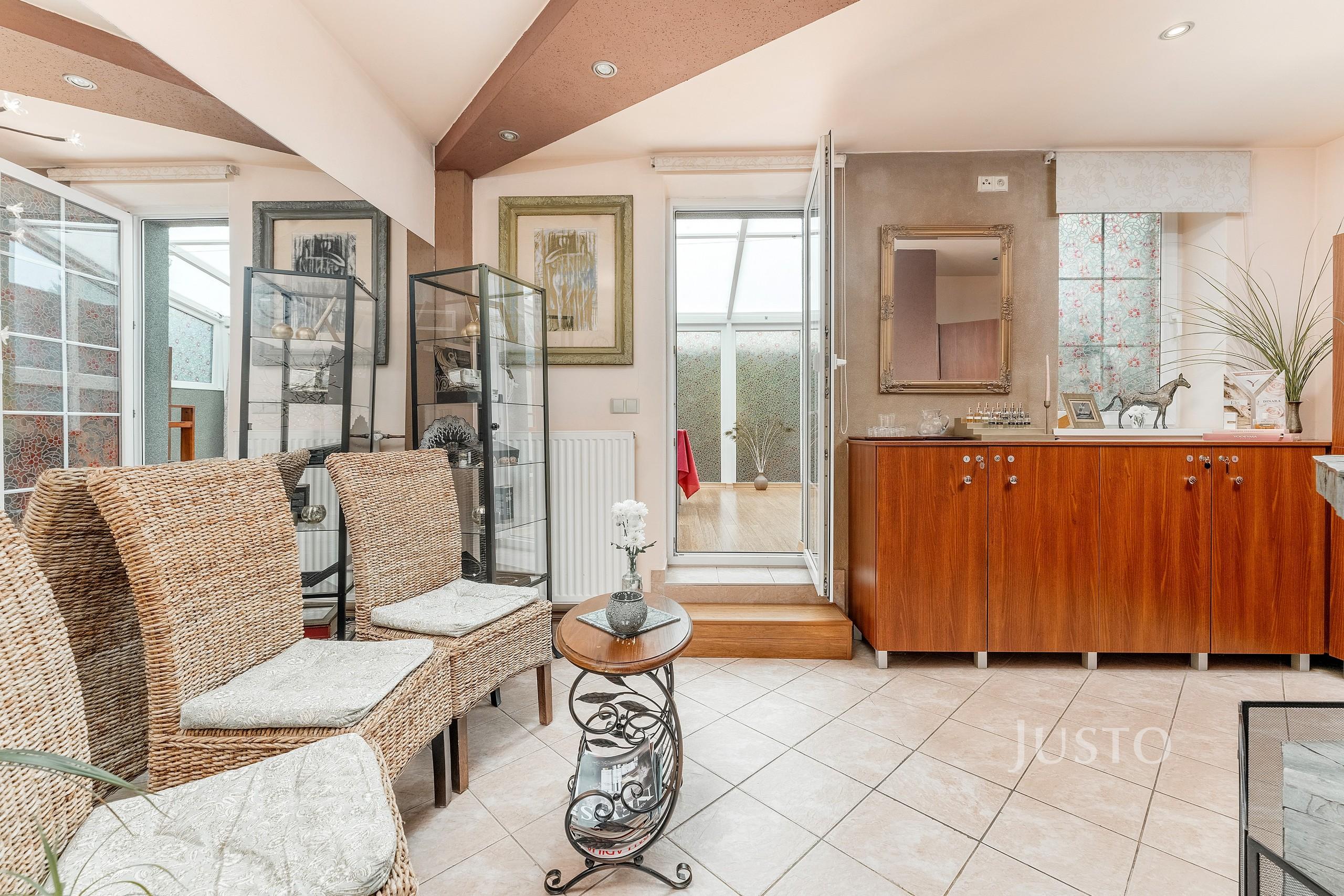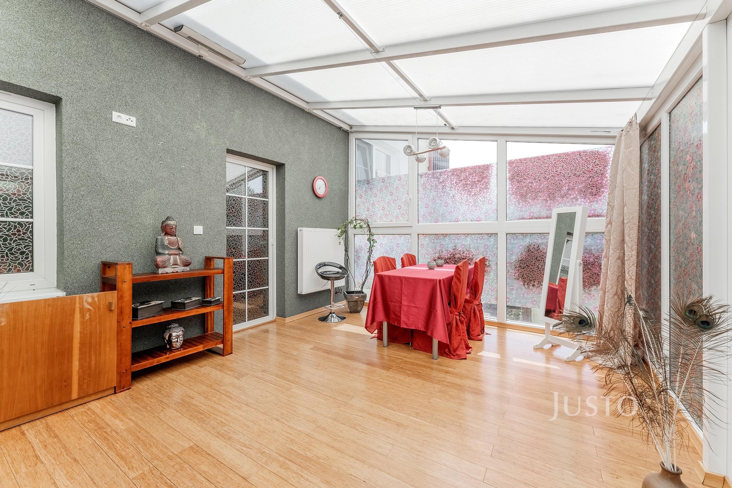 · V patře je vybudována zimní zahrada s trojsklem, která vznikla přestavbou střechy bývalé garáže. Zimní zahrada je propojena s interiérem a nabízí krásný výhled do zahrady.