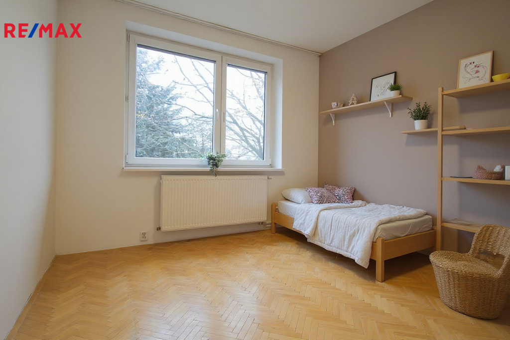 DISPOZICE BYTU: Prostorná vstupní chodba se šatními skříněmi pro maximální úložný prostor. Světlá kuchyň s oknem a praktickým jídelním koutem. Obývací pokoj po kompletní rekonstrukci s přístupem na balkon orientovaný do klidné zeleně. Dětský pokoj a ložnice – ideální pro rodinné bydlení. Moderní koupelna po rekonstrukci se sprchovým koutem. BONUS: Nadstandardně velký sklep 20 m² – vzácnost, kterou ocení každý!