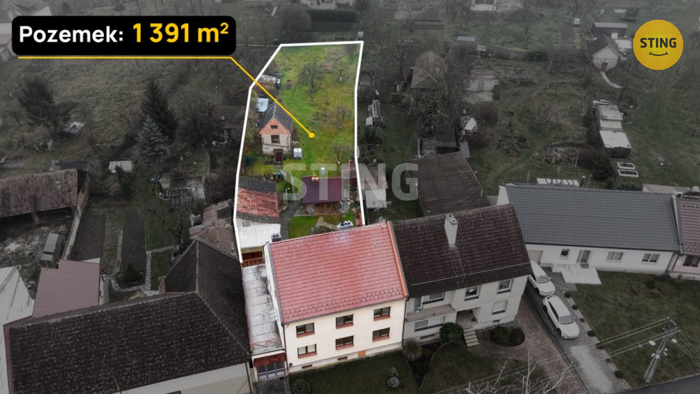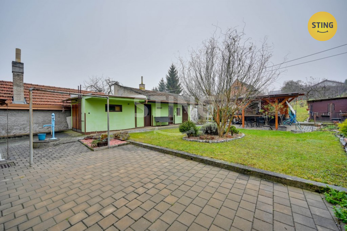 Za domem je zahrada, kde může budoucí vlastník odpočívat pod pergolou s příjemným posezením a využít udírnu. Dále je zde také zahradní domek a hospodářské stavení, které je podsklepené.