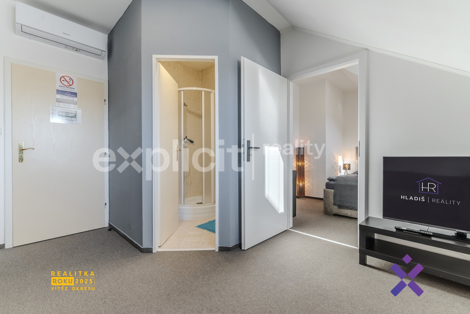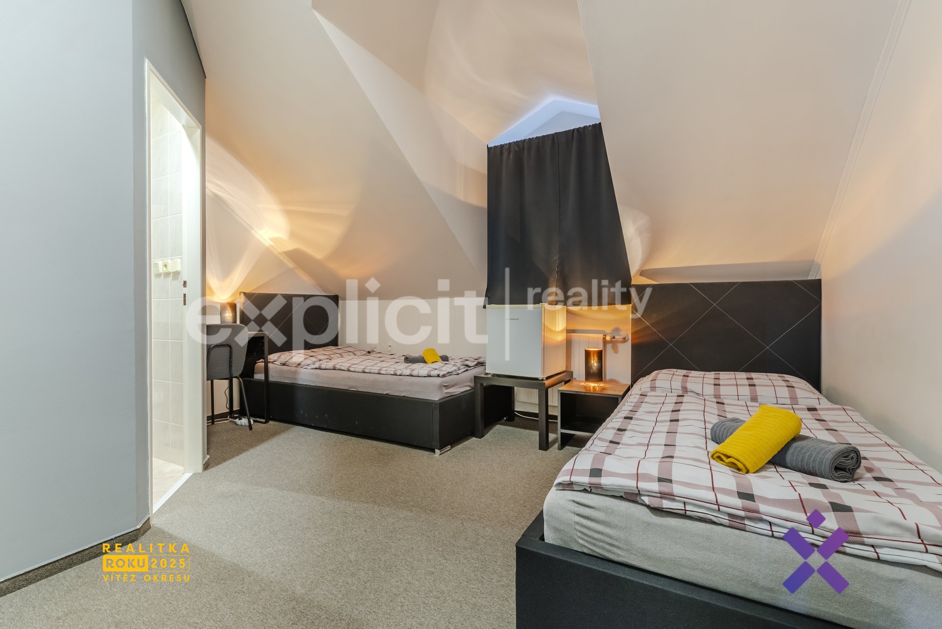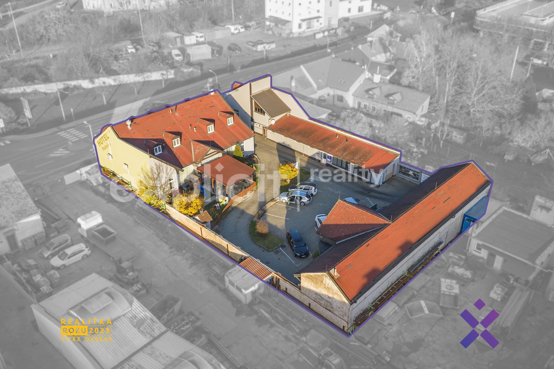 Tento rozmanitý komplex propojuje hotelový provoz, privátní wellness, kancelářské prostory, garáž a automyčku s předmytím. To vše na jednom místě, s výbornou dostupností a vlastním parkováním.
