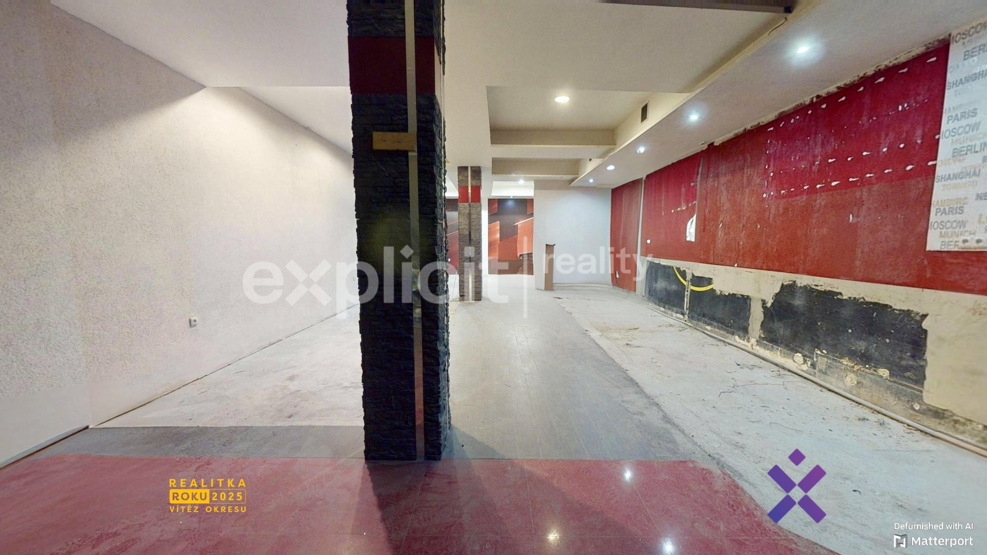 - aktuálně členěno na hlavní místnost, recepci, tři vedlejší místnosti a sociální zázemí