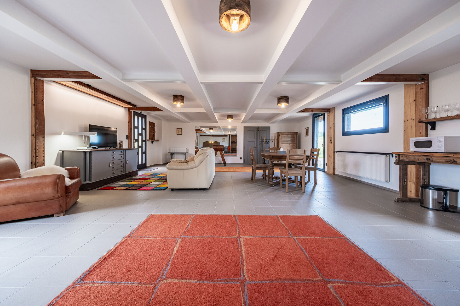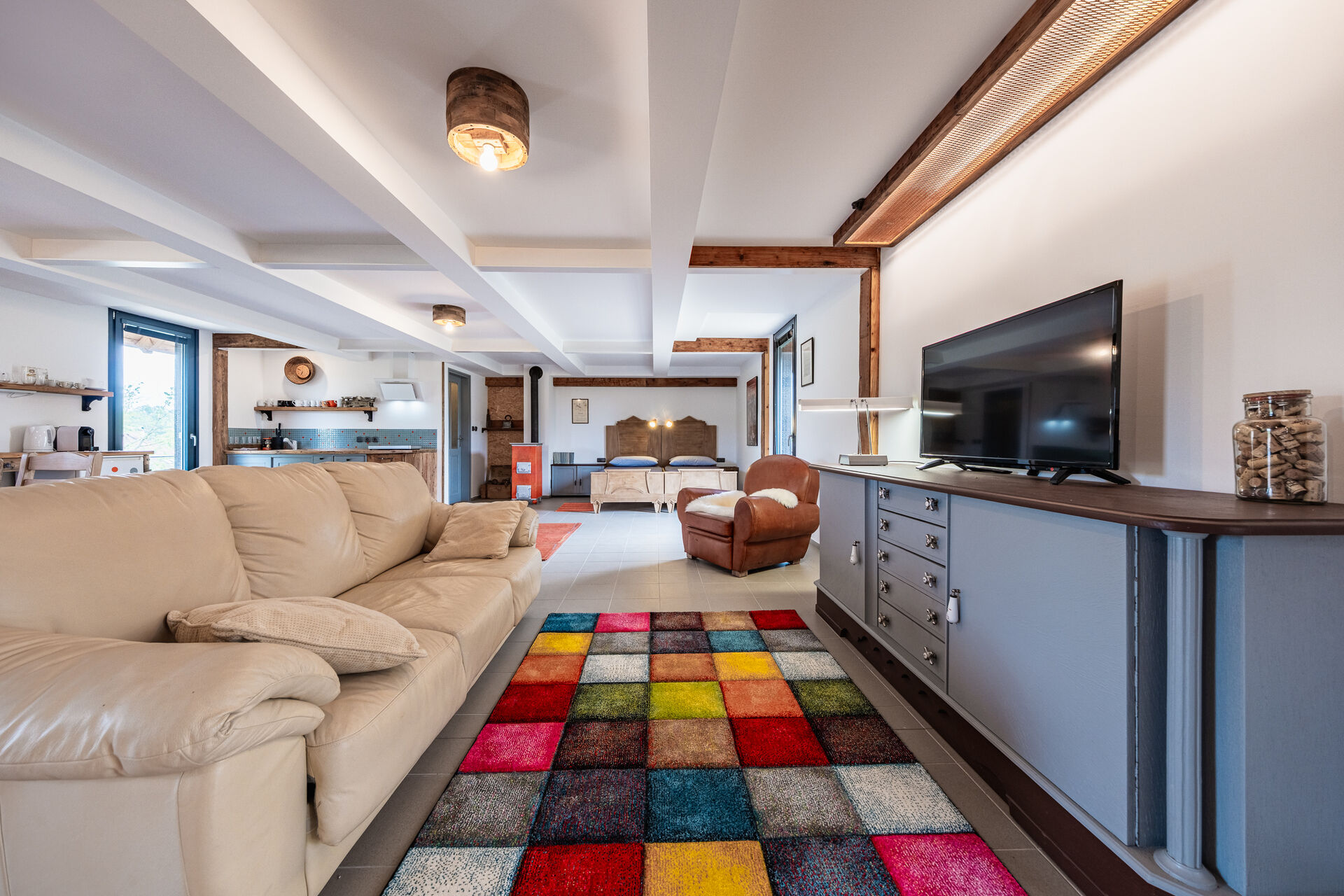 • Přízemí: otevřený ateliérový prostor s kuchyňskou linkou a jídelním koutem, propojený s garáží a vlastním sociálním zázemím.