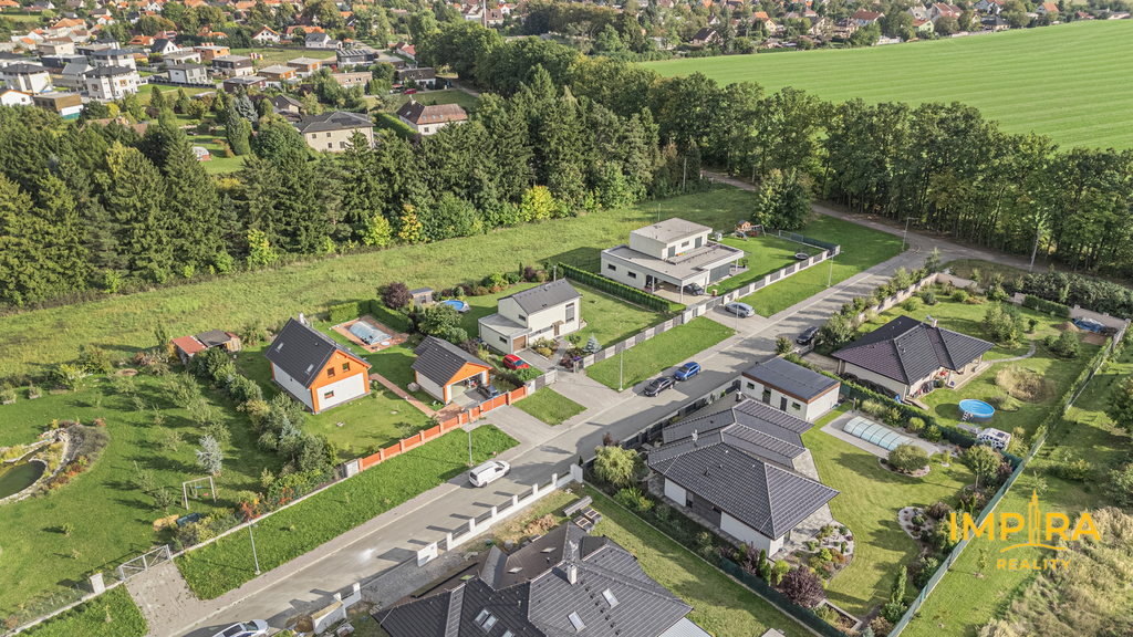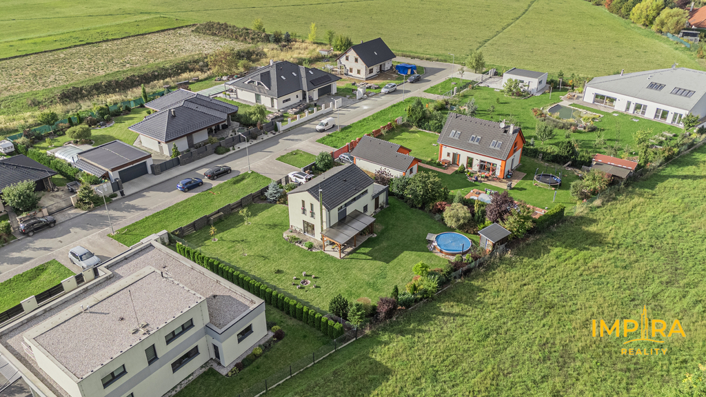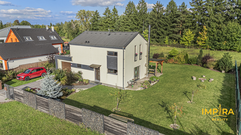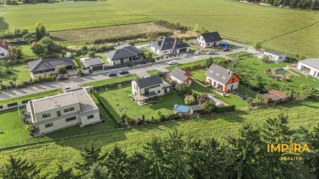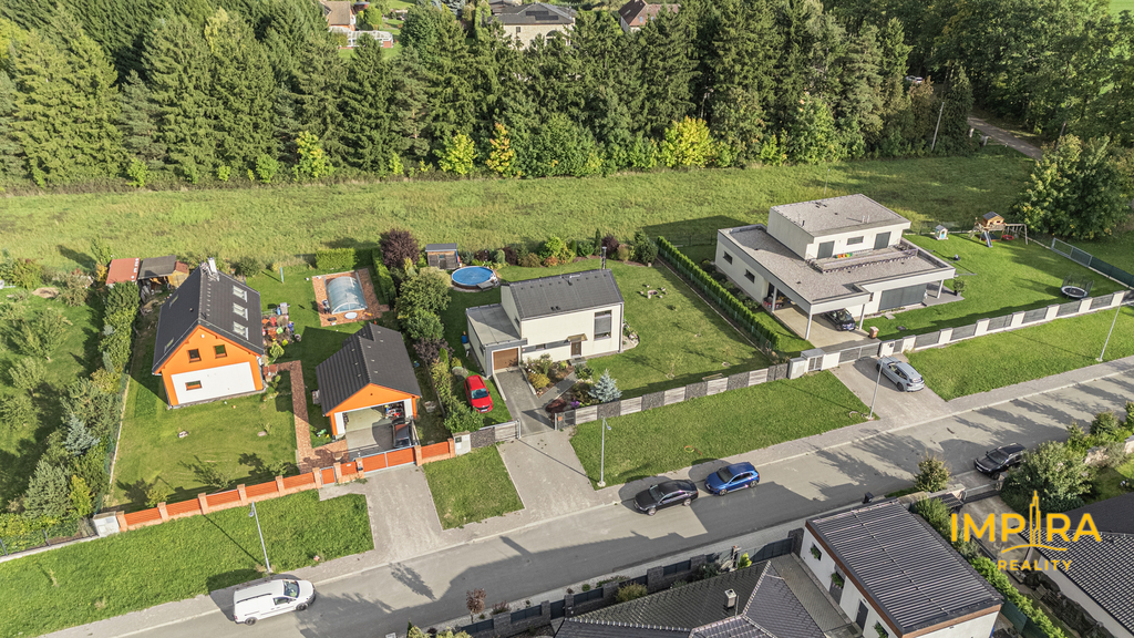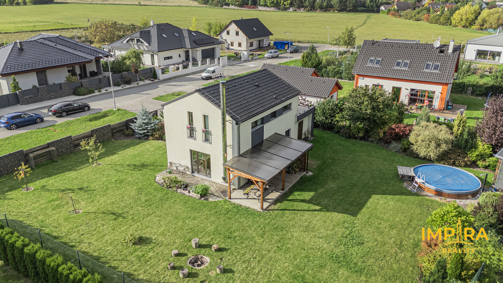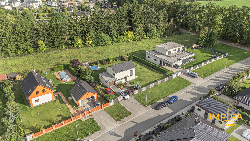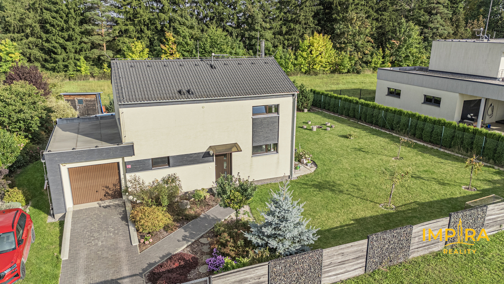 Dům o dispozici 5+KK se nachází na pozemku o velikosti 990 m² a nabízí komfortní bydlení s chytrými technologiemi, bazénem, zahradou a garáží a zastřešenou terasou. Leží v klidné, slepé ulici, kde budou vaše děti v bezpečí.