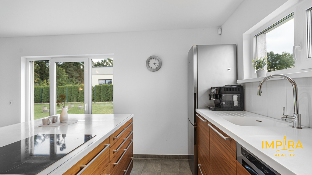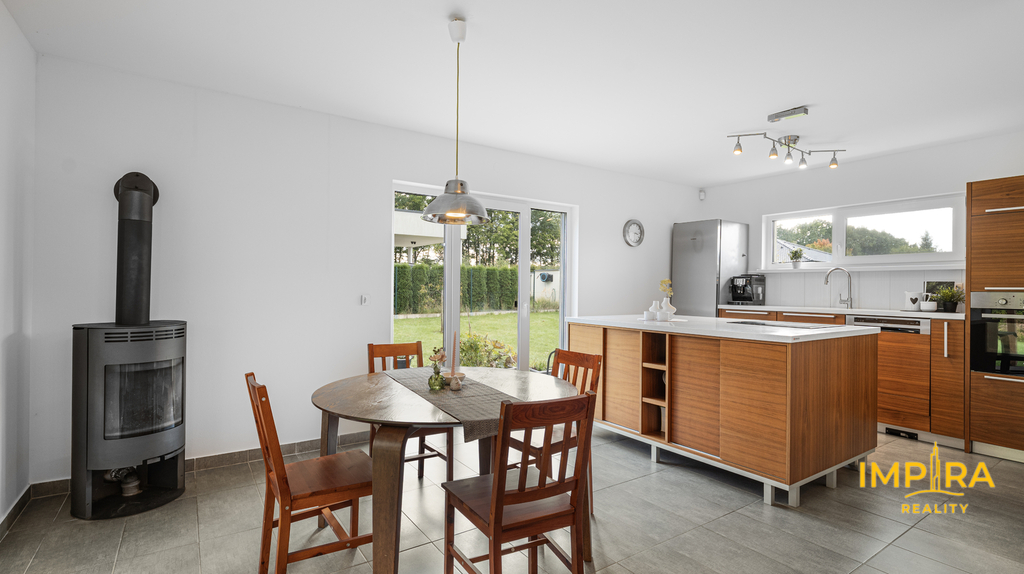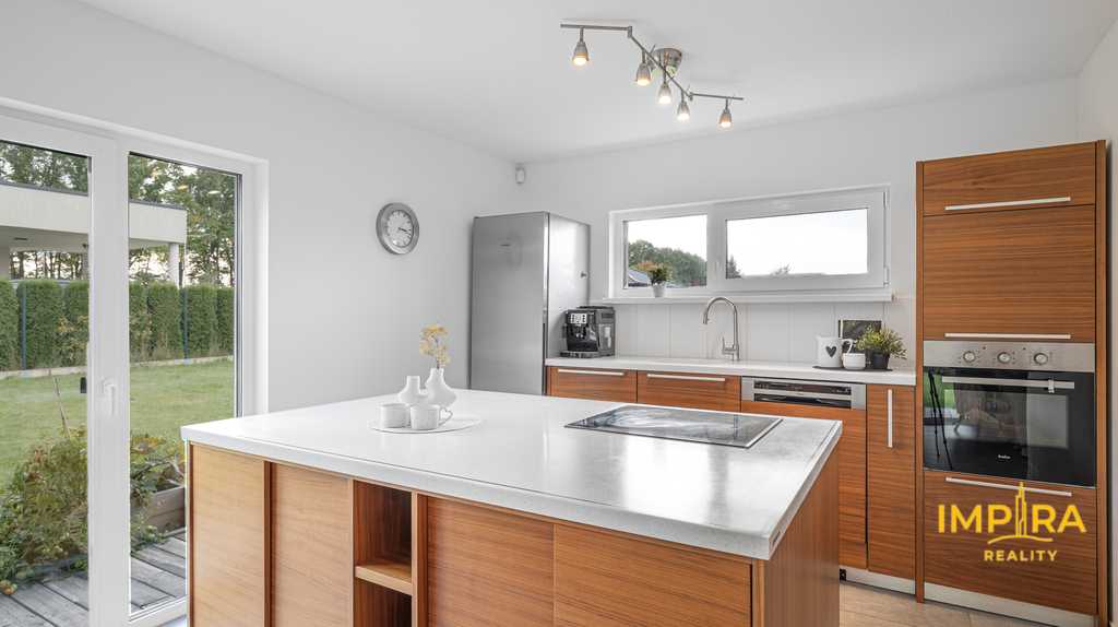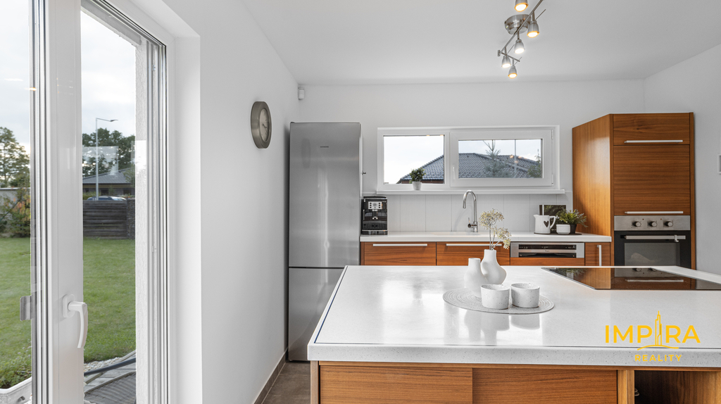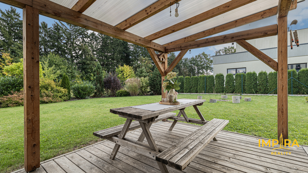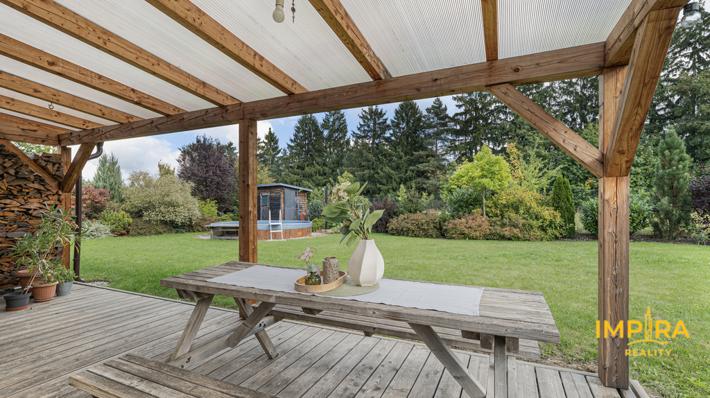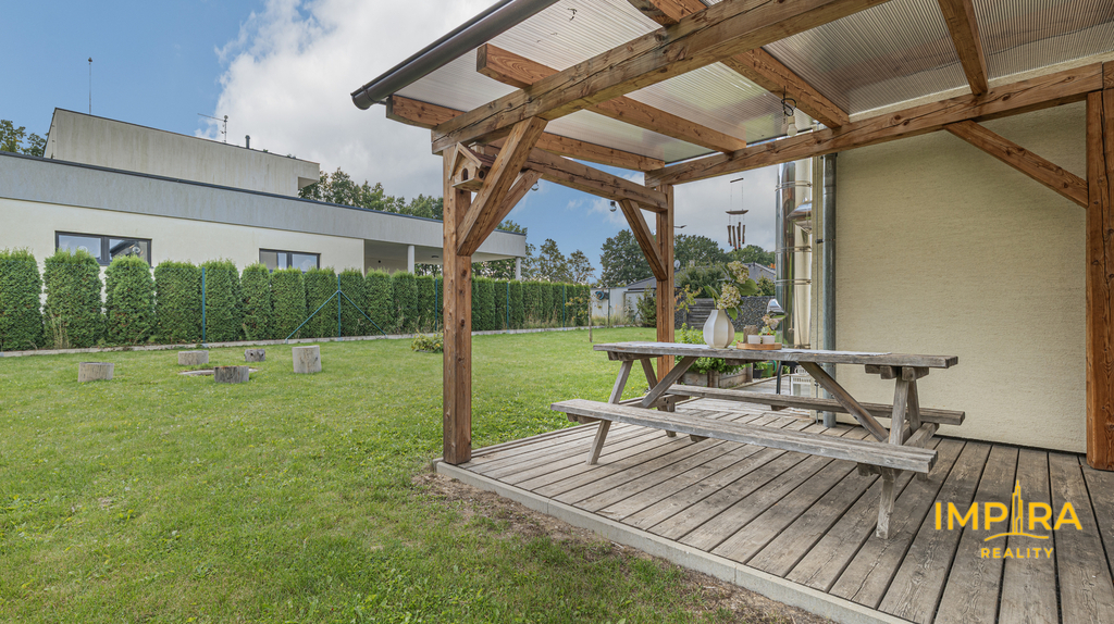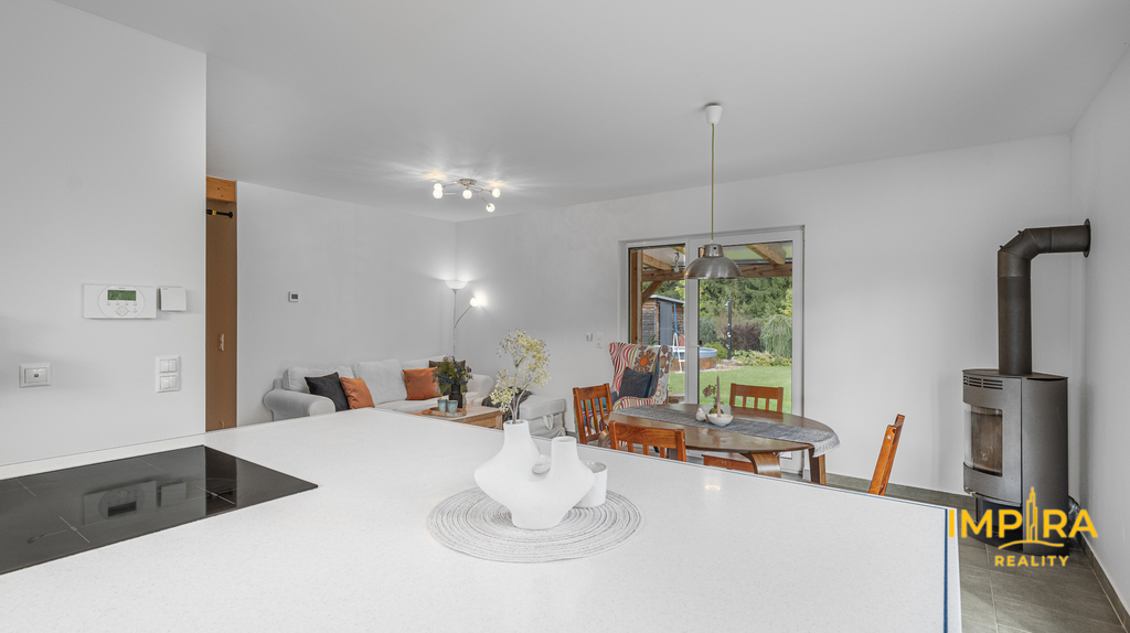 Dům o dispozici 5+KK se nachází na pozemku o velikosti 990 m² a nabízí komfortní bydlení s chytrými technologiemi, bazénem, zahradou a garáží a zastřešenou terasou. Leží v klidné, slepé ulici, kde budou vaše děti v bezpečí.