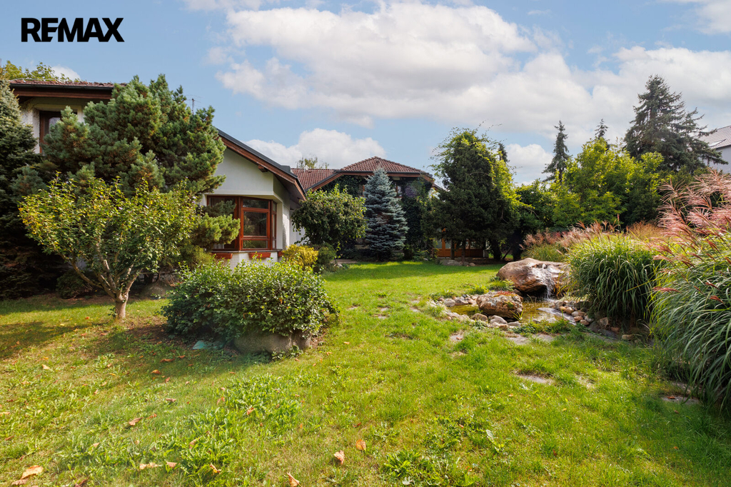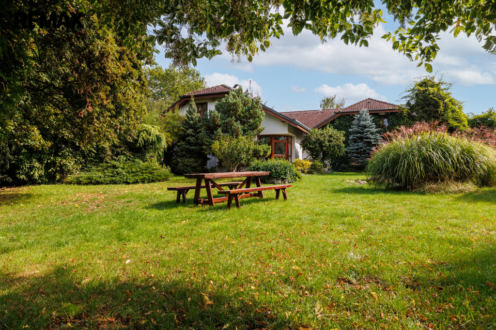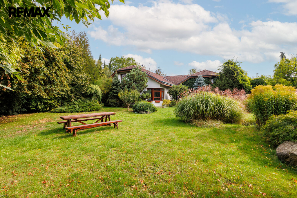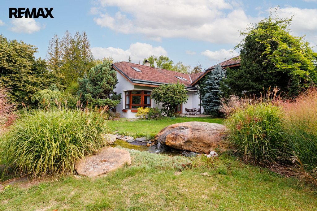 Zahrada je vzrostlá, udržovaná a od počátku promyšleně budovaná s důrazem na soukromí. Součástí je přírodní biotop, vzrostlé stromy i ovocná zahrada a okrasné kameny. Nechybí zahradní altán napojený na elektřinu, terasy a přímý vstup do wellness.