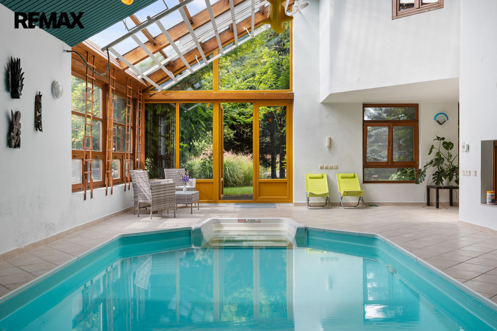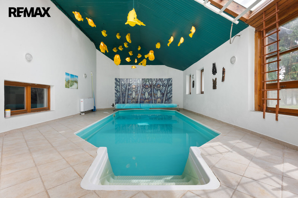 Jedná se o dům, který nabízí víc než jen dostatek místa. Díky promyšlenému návrhu a kvalitnímu provedení a dlouhodobé údržbě je v dobrém stavu. Spojuje pohodlí rodinného bydlení s prvky výrazně zvyšují komfort – vnitřní bazén, zahrada s biotopem, prostorné zázemí i naprosté soukromí. To vše v klidné obci s rychlým spojením do Prahy.