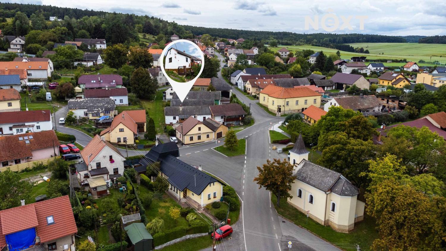 Lokalita: Poloha domu téměř na návsi znamená, že veškerá občanská vybavenost – škola, školka, obchod, knihovna, hospoda i autobusová zastávka – je opravdu jen pár kroků od domu.