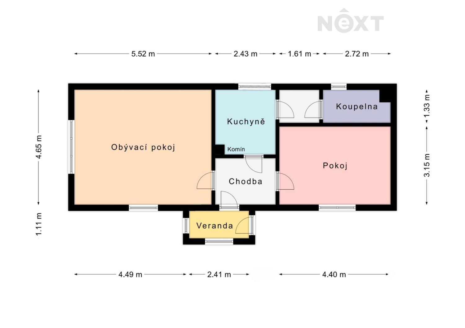 Součástí domu je vstupní veranda, chodba, dvě obytné místnosti, kuchyň a koupelna. Na obytnou část navazuje menší úložný prostor s přístupem na půdu.