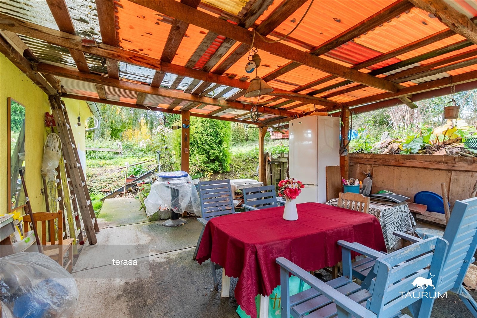Okolo domu se rozprostírá menší zahrada o rozloze 157 m2. V zadní části domu je zastřešené posezení a přístup do domu.