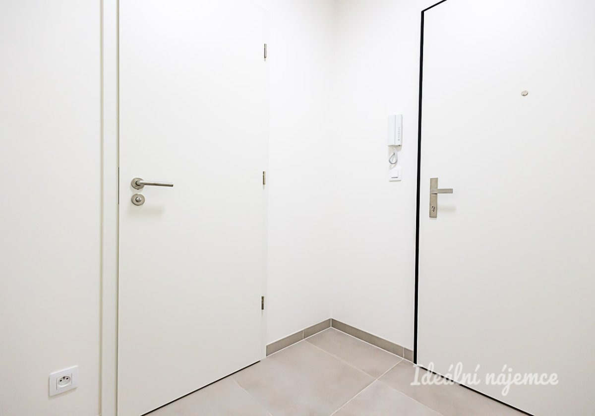 Interiér je nabízen jako částečně vybavený, což budoucím nájemníkům umožňuje doladit si domov podle vlastního vkusu a potřeb. Srdcem bytu je prosvětlený obývací pokoj s francouzským oknem, které do prostoru přivádí dostatek přirozeného světla. Součástí pokoje je moderní kuchyňský kout vybavený veškerými potřebnými spotřebiči včetně lednice s mrazákem, elektrické trouby, varné desky, digestoře a myčky. Dispozice dále nabízí samostatnou ložnici a koupelnu se sprchovým koutem, umyvadlem a toaletou.