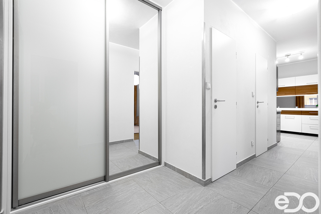 Byt je dispozičně členěn na dvě ložnice a obývací pokoj, který je praktickou příčkou oddělen od kuchyně. Z obývacího pokoje je vstup na prostornou lodžii 7m2 orientovanou na západ, takže majitelé bytu se v horkých letních měsících nemusejí obávat vysokých teplot. Obě ložnice mají severní orientaci.