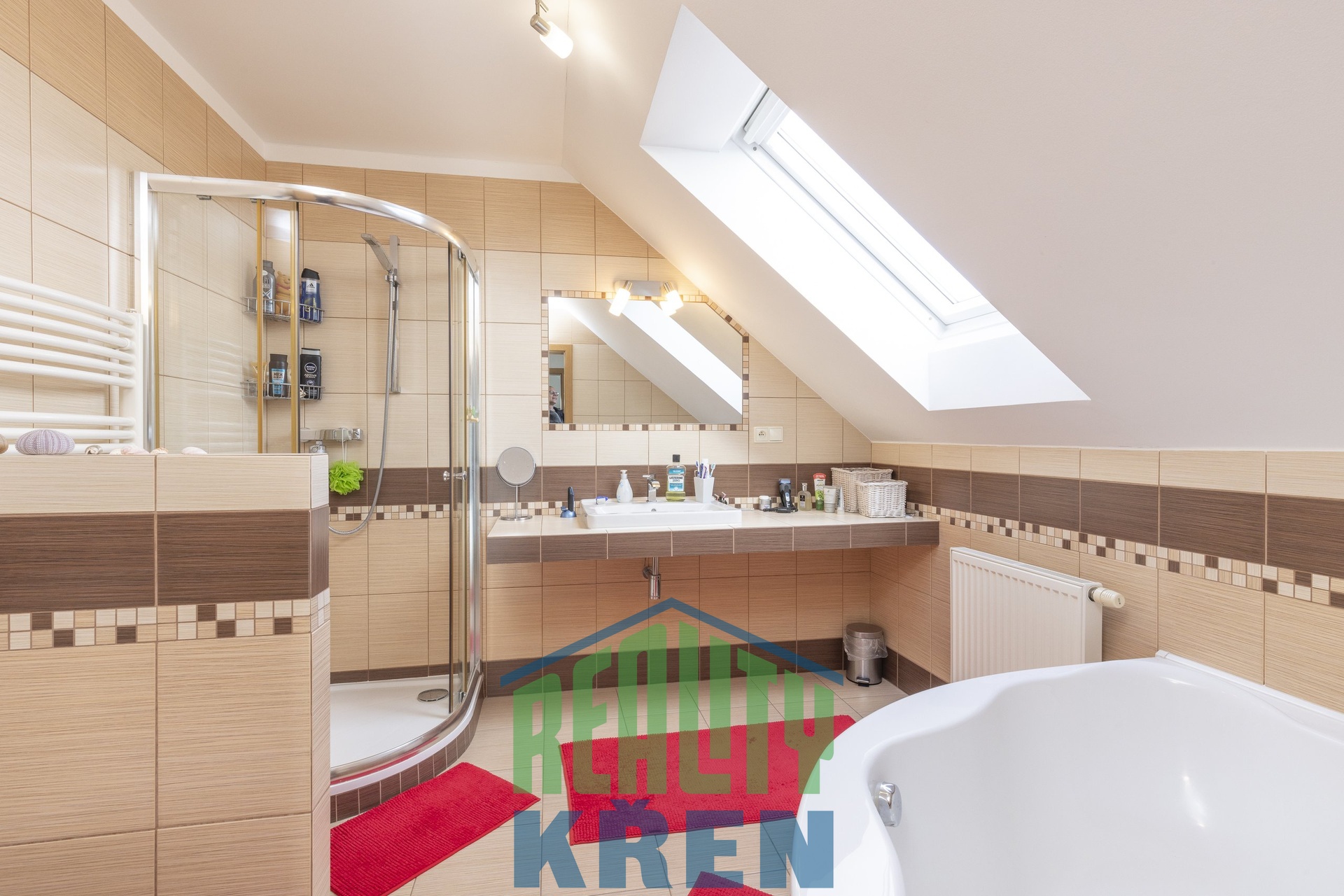 K domu náleží garáž 44 m2 pro dva osobní automobily (prostor pro parkování dalších vozidel na pozemku), nad garáží prostor pro vybudování další místnosti s propojením s vrchní ložnicí. Kolem domu udržovaná okrasná zahrada s pergolou s bočními hliníkovými roletami. Pro zalévání zahrady 4m3 nádrž na dešťovou vodu. Zahrada poskytuje naprosté soukromí.