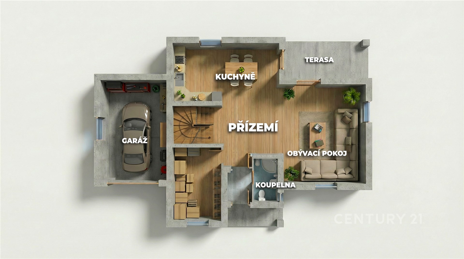 Rodinný dům o dispozici 5+kk nabízí užitnou plochu 247 m² a je situován na pozemku o velikosti 673 m². Dům je prakticky rozdělen na denní a klidovou část. V přízemí se nachází prostorný obývací pokoj o výměře 32 m², který je propojen s kuchyní a jídelnou. Samotná kuchyň má výměru necelých 23 m² a poskytuje dostatek prostoru pro komfortní vaření i rodinné stolování. Dále se zde nachází vstupní zádveří, samostatný pokoj o velikosti 13 m², koupelna s WC a přímý vstup z obývací části na terasu.
