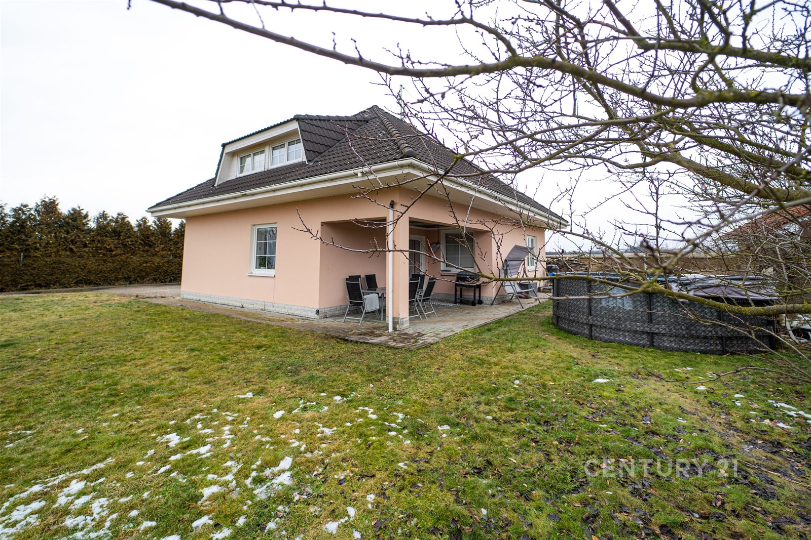 Velkým benefitem nemovitosti je možnost parkování až pro pět vozidel přímo na pozemku a zároveň samostatná garáž o velikosti 23 m². Zahrada nabízí příjemné terasové posezení, ideální pro rodinné chvíle, relaxaci i grilování. Součástí pozemku je také vlastní malé jezírko, které dotváří klidnou atmosféru celého místa.