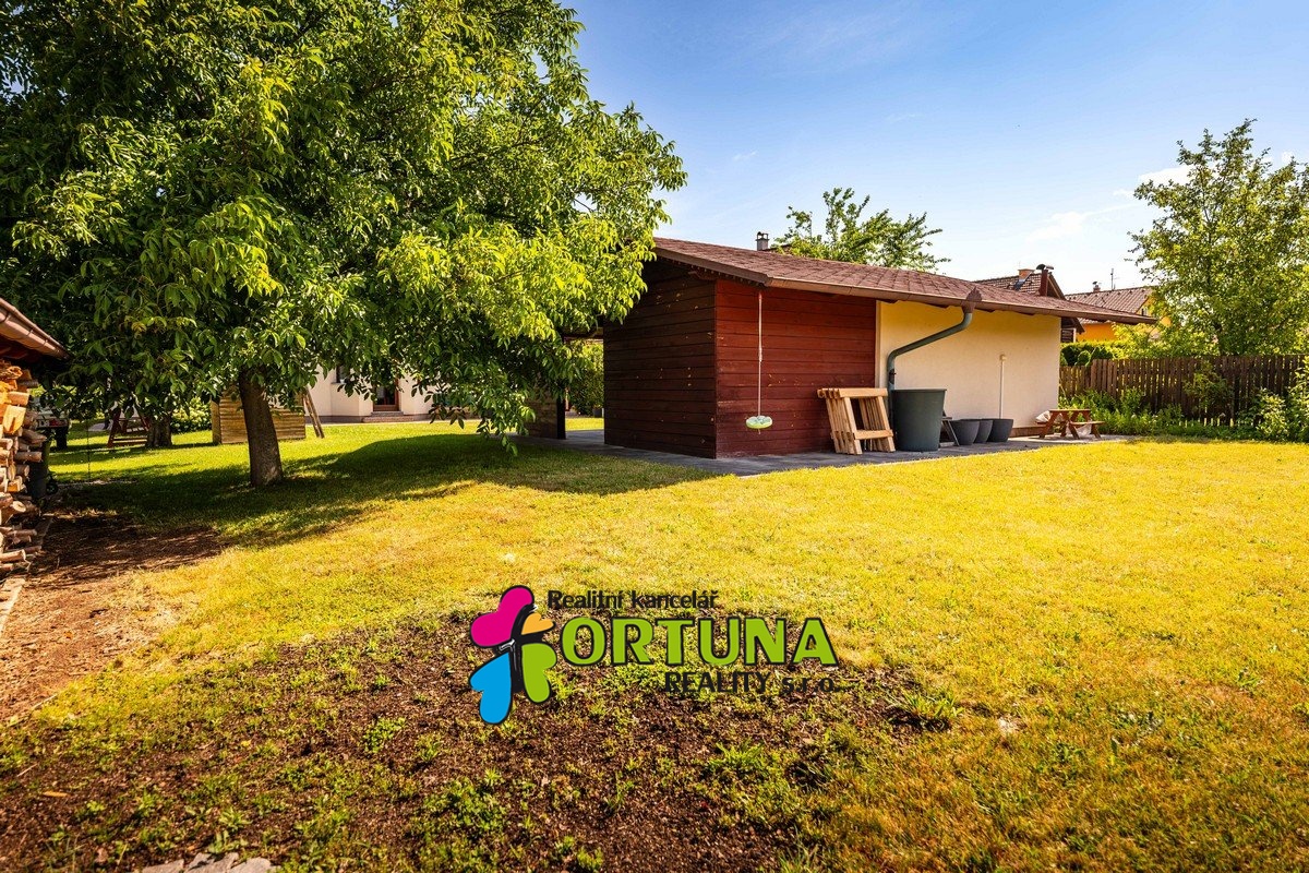 Na pozemku se nachází zahradní domek s krytou terasou, dílnou a skladem, ideální pro odpočinek nebo zahradní aktivity. Pro zalévání zahrady je k dispozici vlastní studna pro užitkovou vodu s rozvodem až do garáže a na terasu.