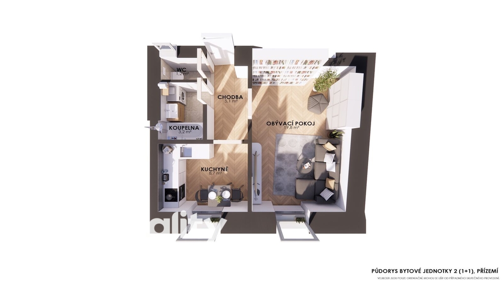 - Celková podlahová plocha: 37 m²