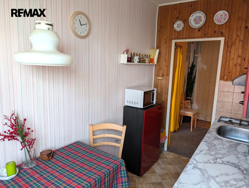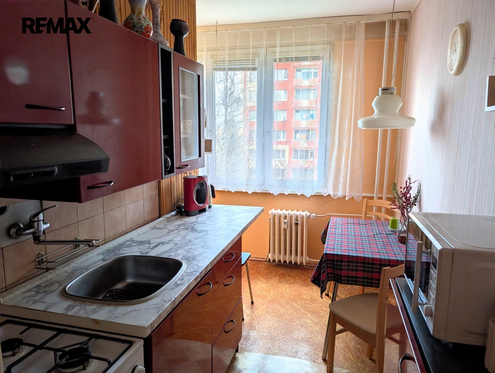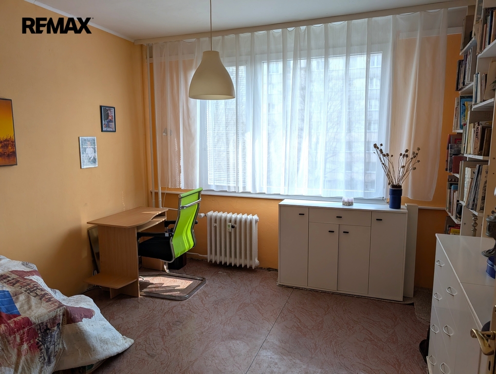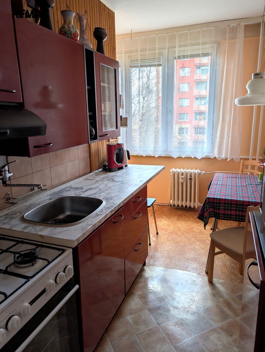 Byt se nachází ve 2 patře sedmipatrového panelového domu, je v původním, dobře udržovaném stavu, připraven k vlastní realizaci podle Vašich představ. Koupelna s vanou i toaleta je obložena keramickými obklady. Okna jsou plastová. Dostatek prostoru zajišťuje praktická komora v mezipatře, k bytu dále náleží sklep. V přízemí domu je k dispozici kolárna.