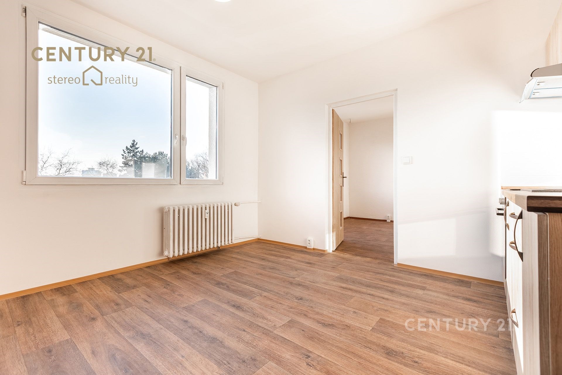 Díky svému praktickému uspořádání může byt působit také jako 2+kk. Kuchyň je dostatečně prostorná a nabízí místo i pro obývací zónu. Druhý pokoj pak může bez problémů sloužit jako samostatná ložnice.