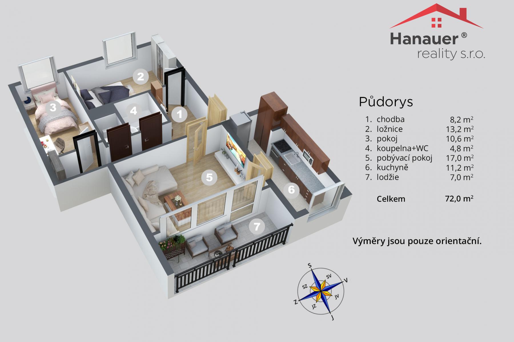 | Dispozice/podlahová plocha: | 3+1/72 m² |