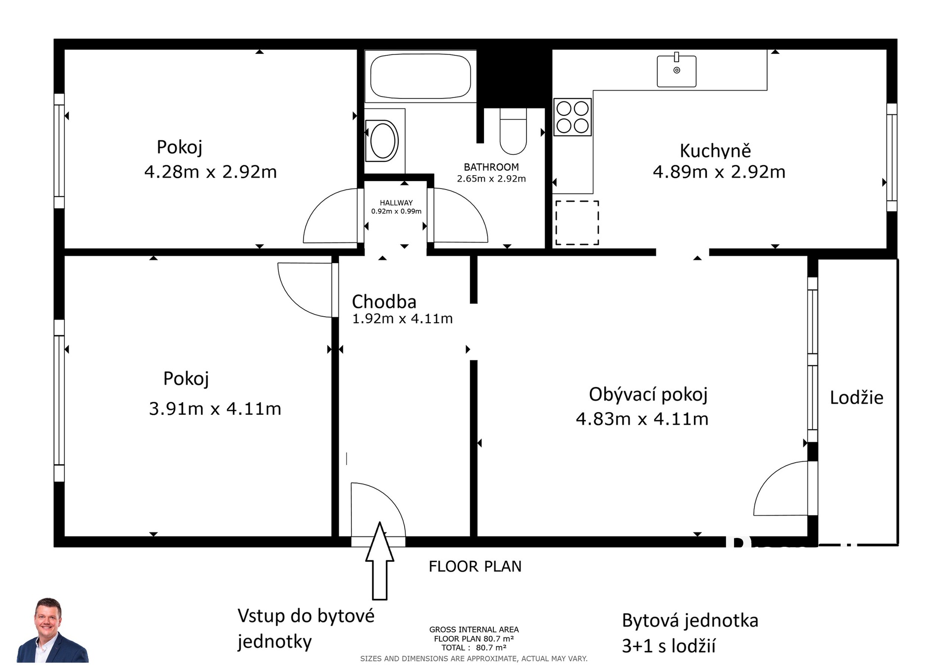 | Dispozice/podlahová plocha: | 3+1/80 m² |