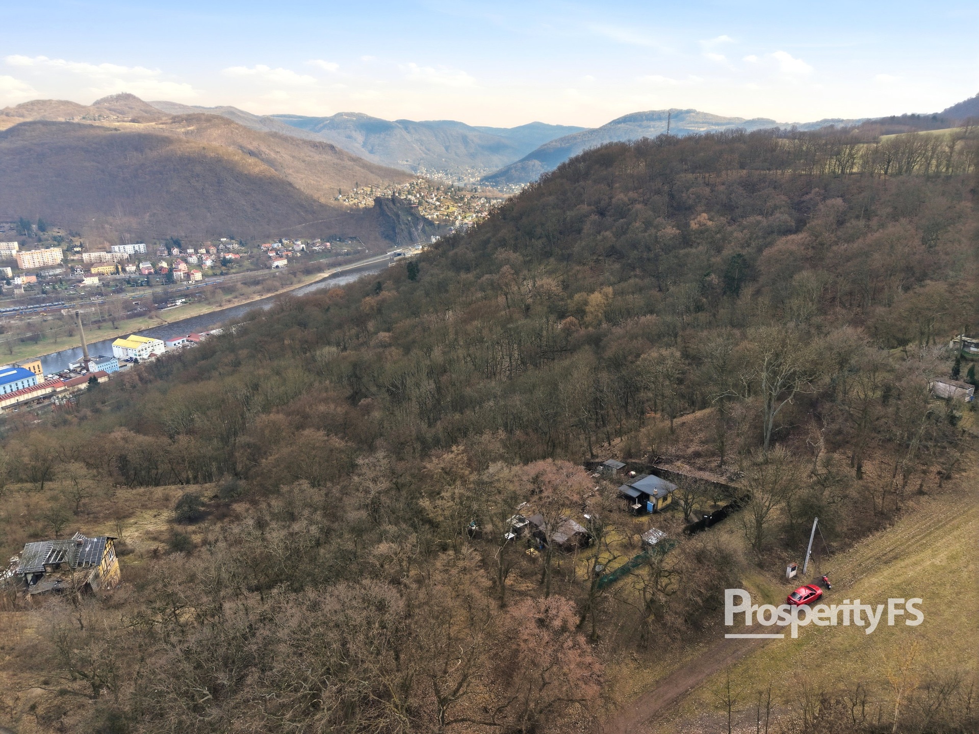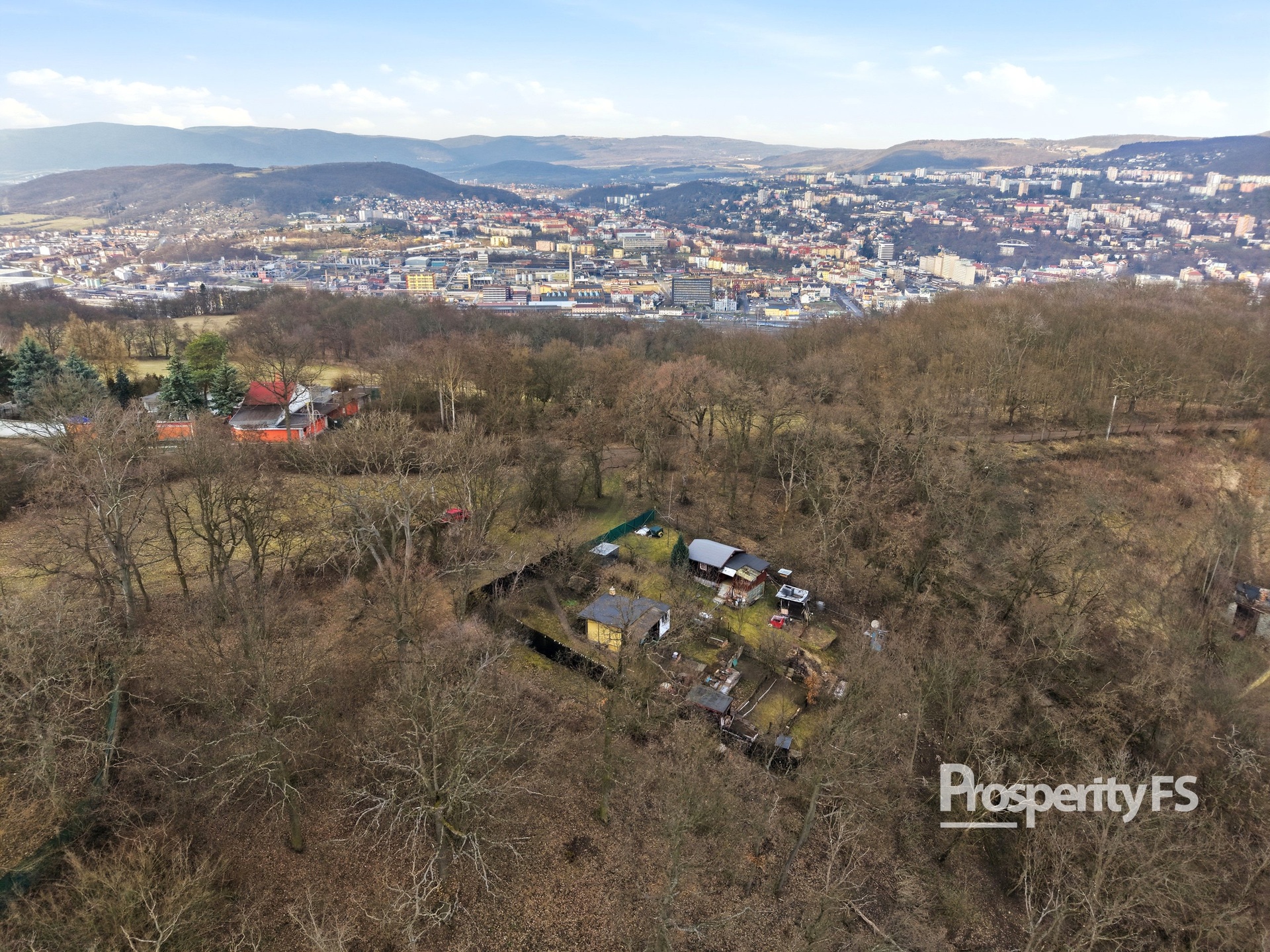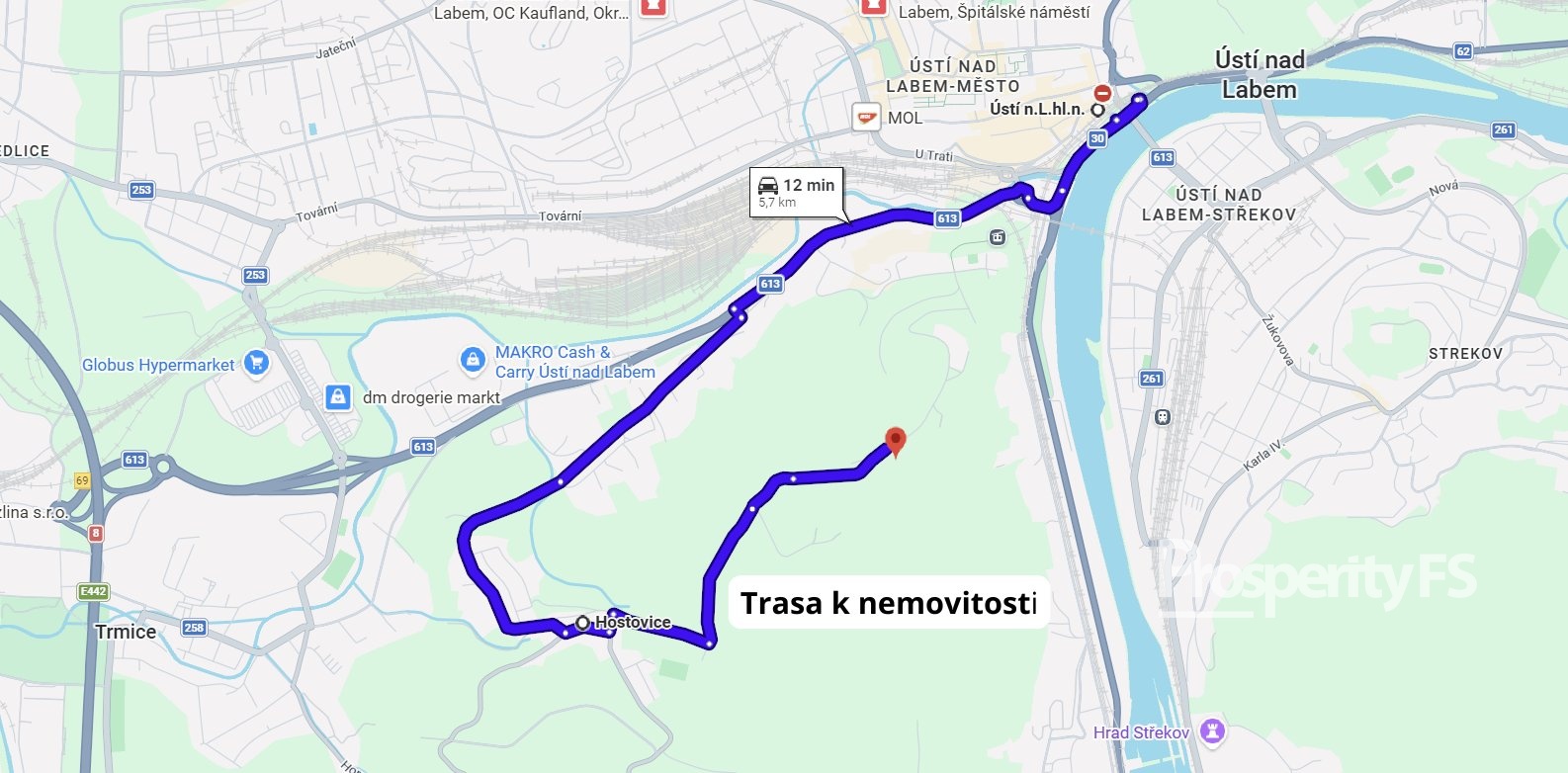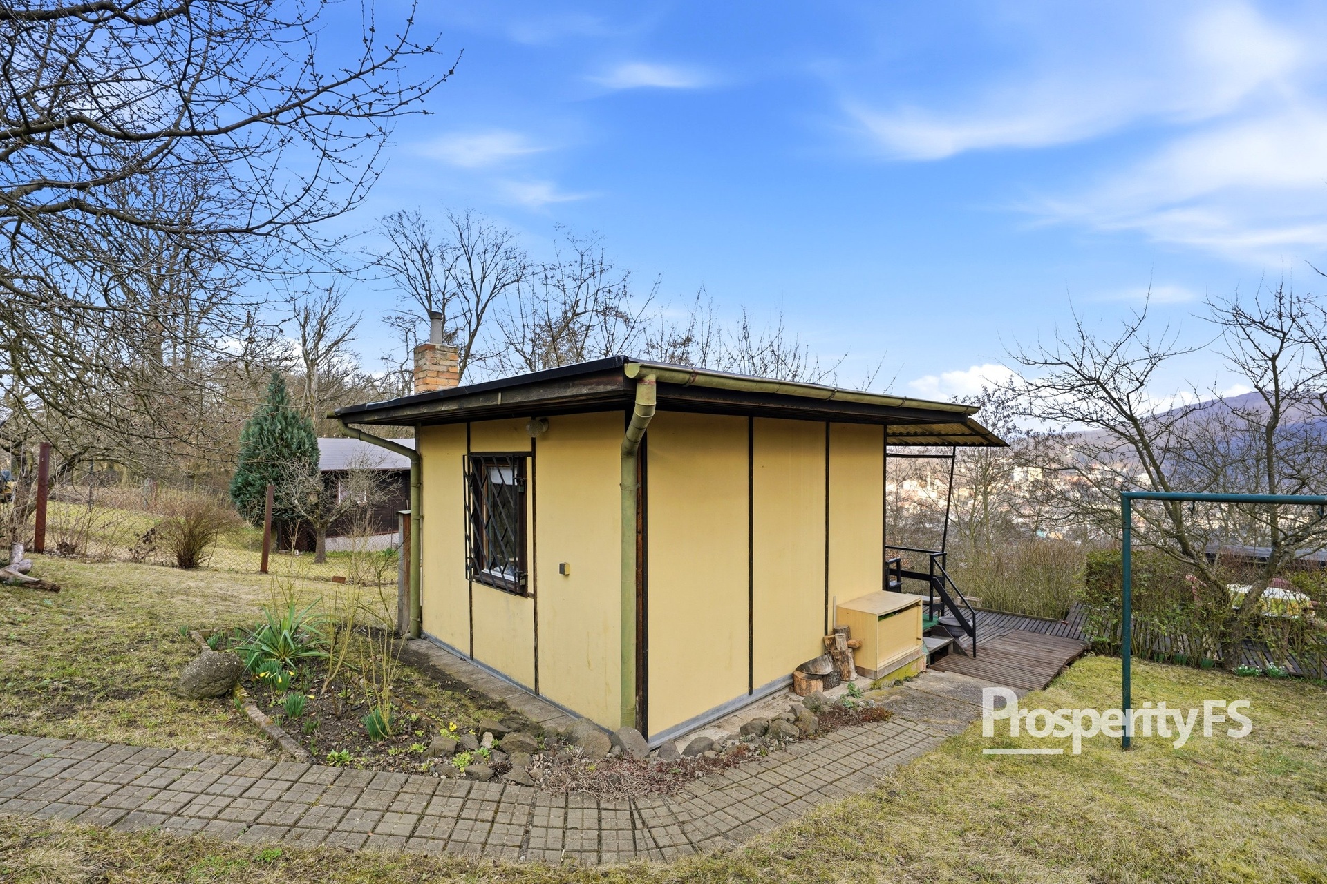 Chata se nachází na oploceném pozemku o velikosti 430 m² (v nájmu od města) a nabízí příjemné soukromí s minimem sousedů. Lokalita působí jako polosamota, přesto je centrum města v dobré dostupnosti. Velkým benefitem je pěkný výhled na Střekov a okolní krajinu.