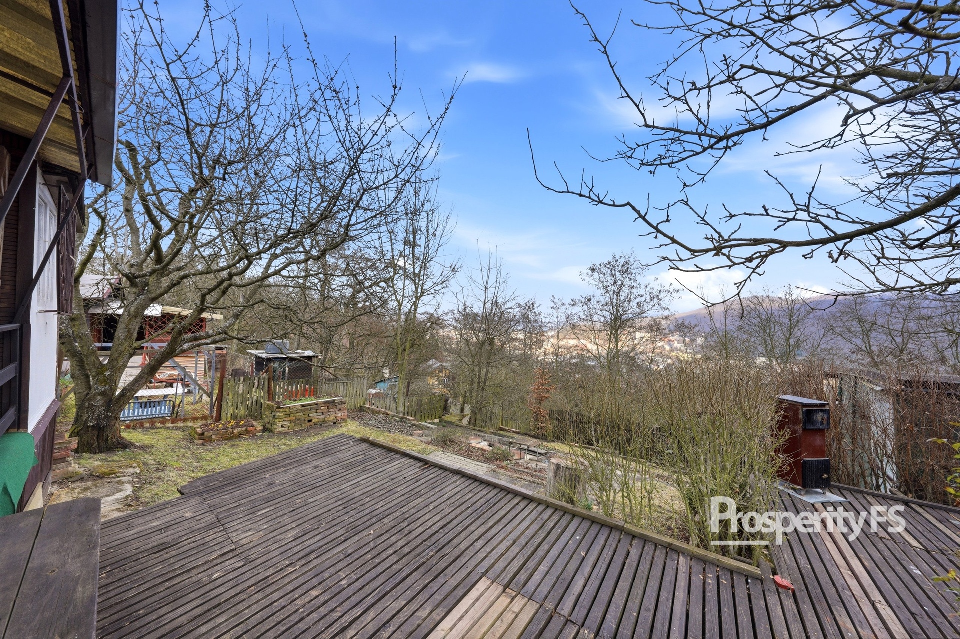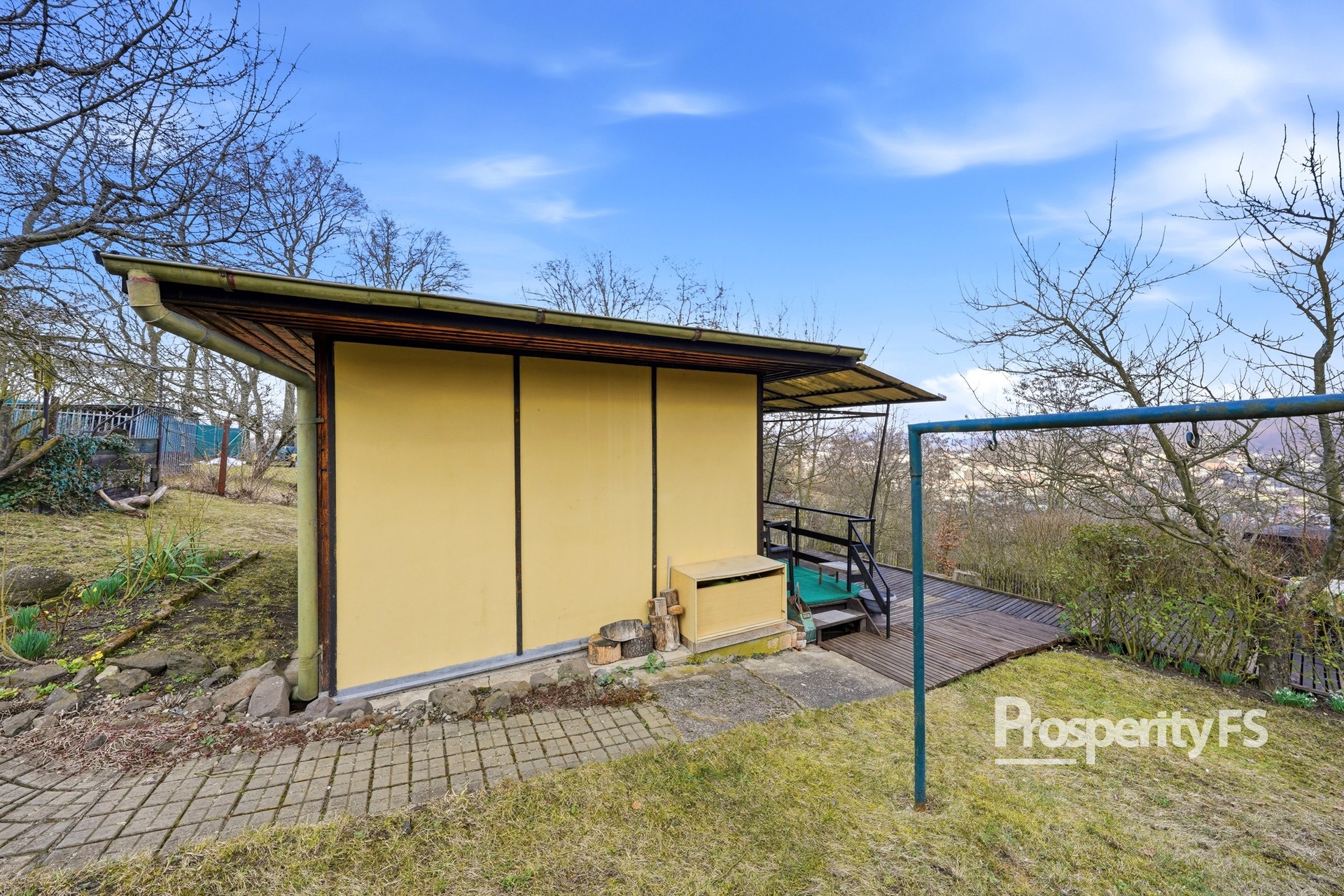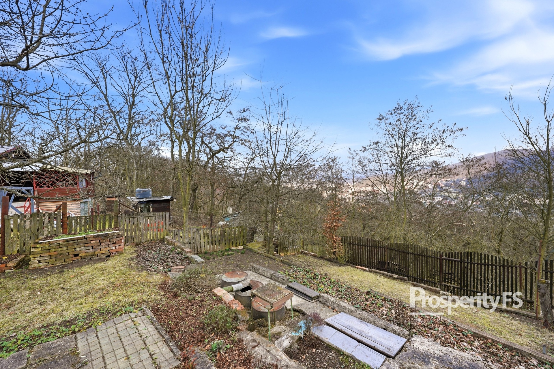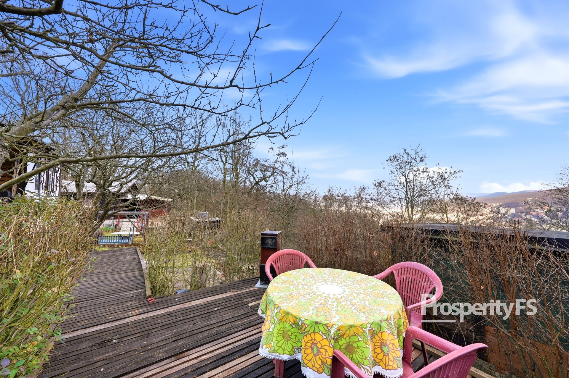 Chata se nachází na oploceném pozemku o velikosti 430 m² (v nájmu od města) a nabízí příjemné soukromí s minimem sousedů. Lokalita působí jako polosamota, přesto je centrum města v dobré dostupnosti. Velkým benefitem je pěkný výhled na Střekov a okolní krajinu.