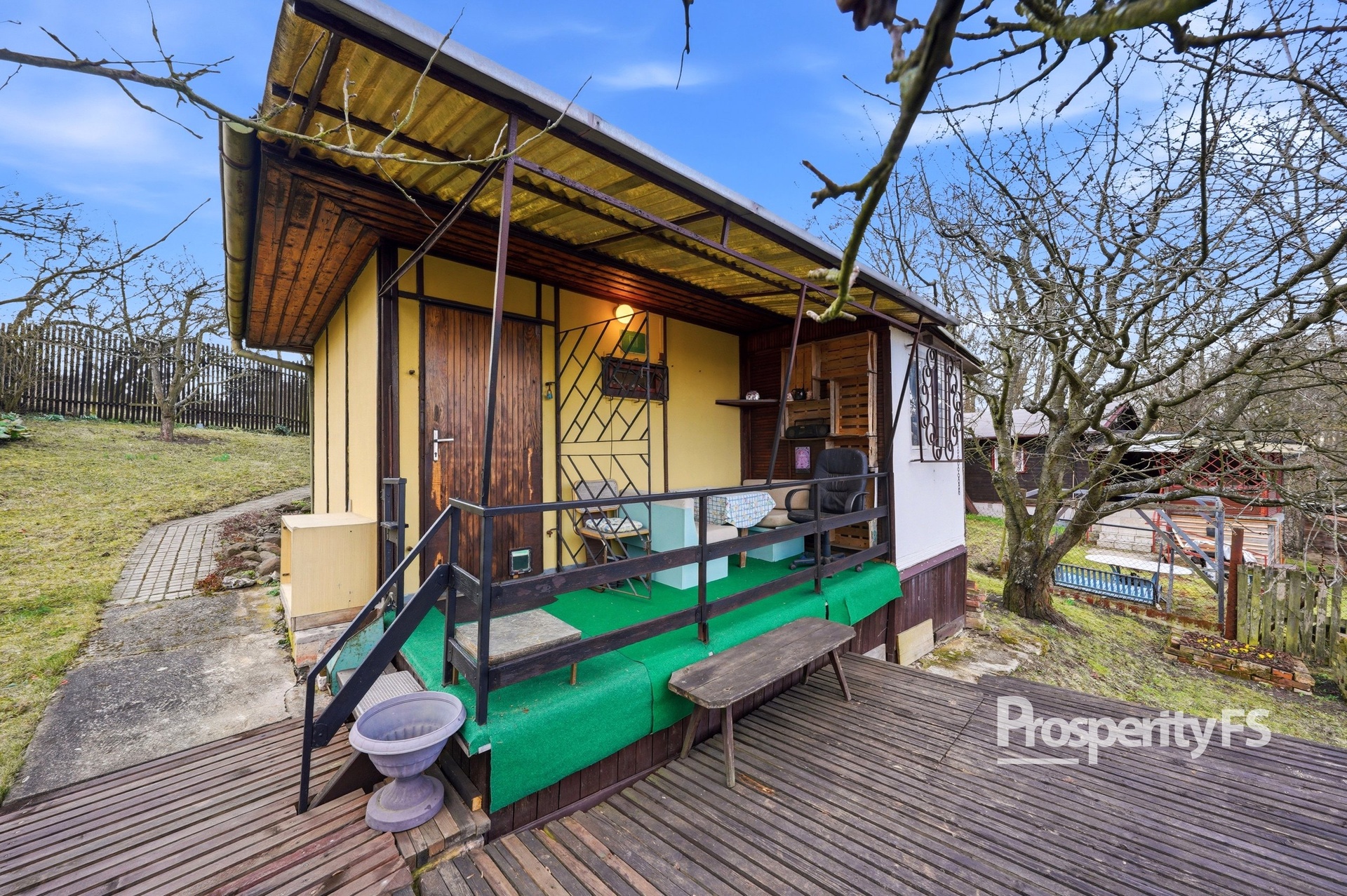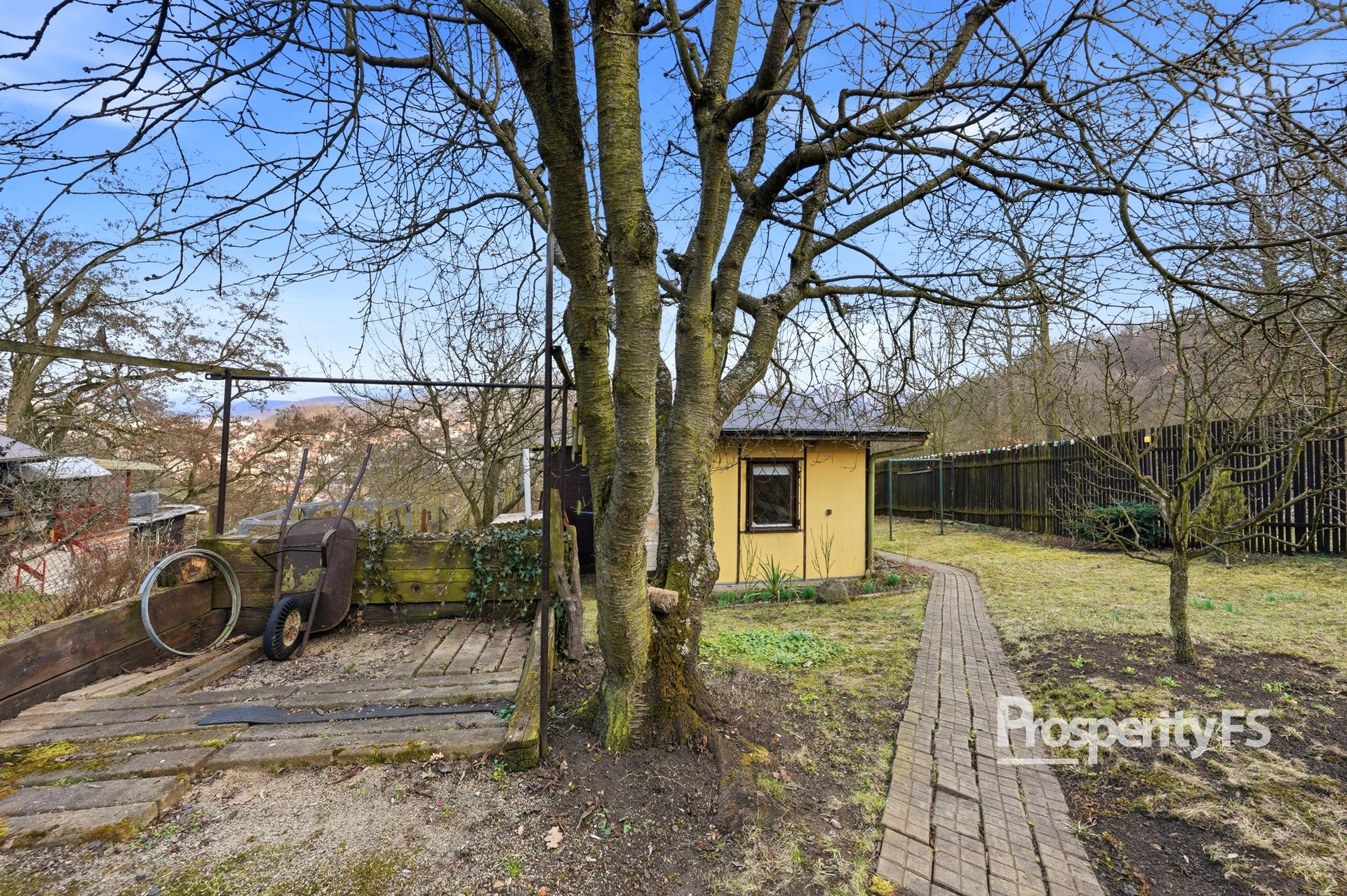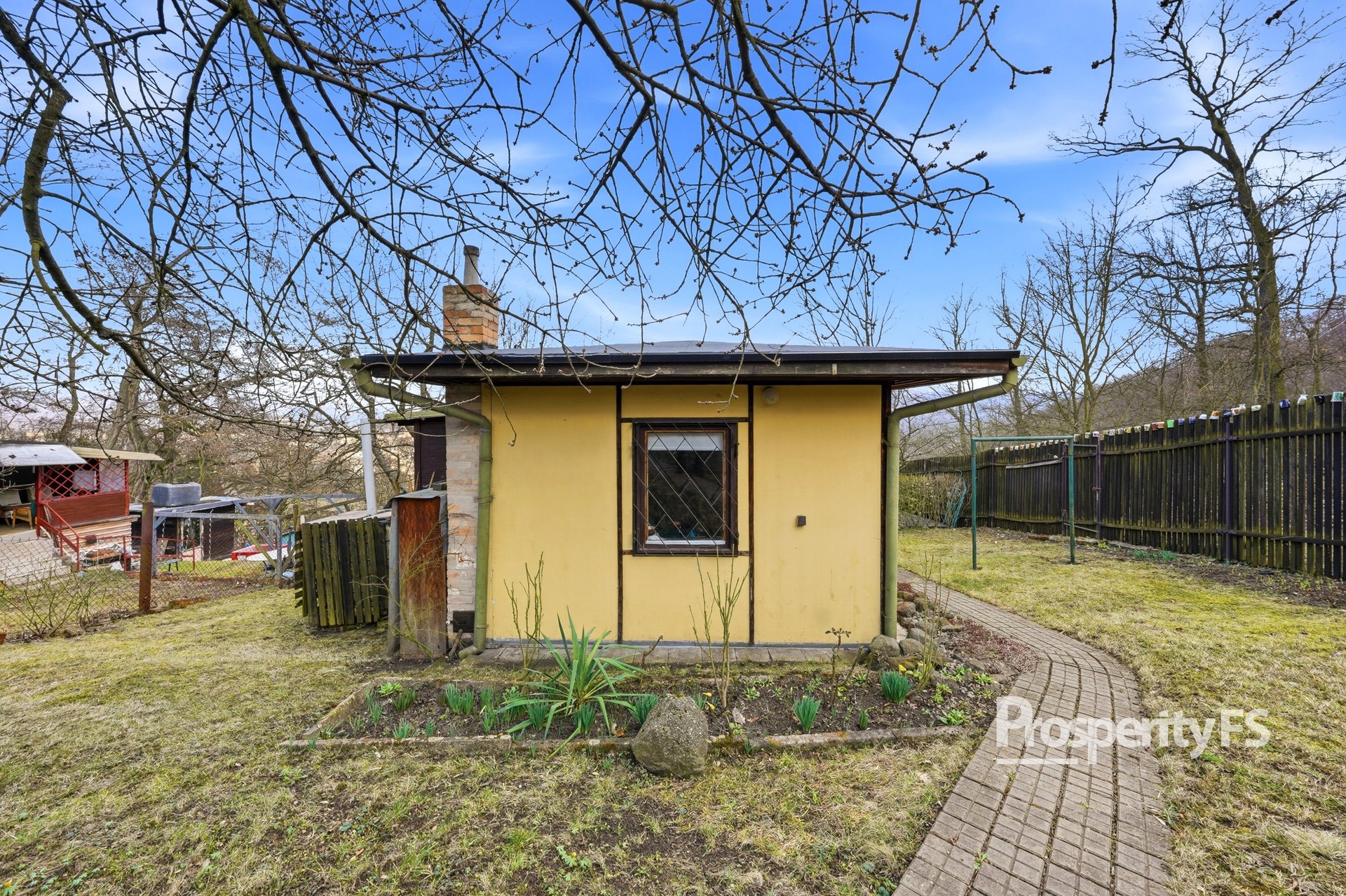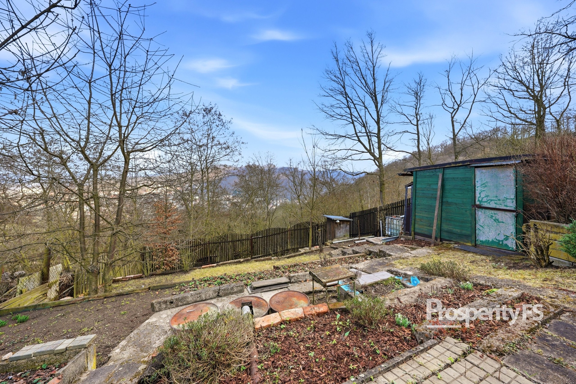 Chata se nachází na oploceném pozemku o velikosti 430 m² (v nájmu od města) a nabízí příjemné soukromí s minimem sousedů. Lokalita působí jako polosamota, přesto je centrum města v dobré dostupnosti. Velkým benefitem je pěkný výhled na Střekov a okolní krajinu.