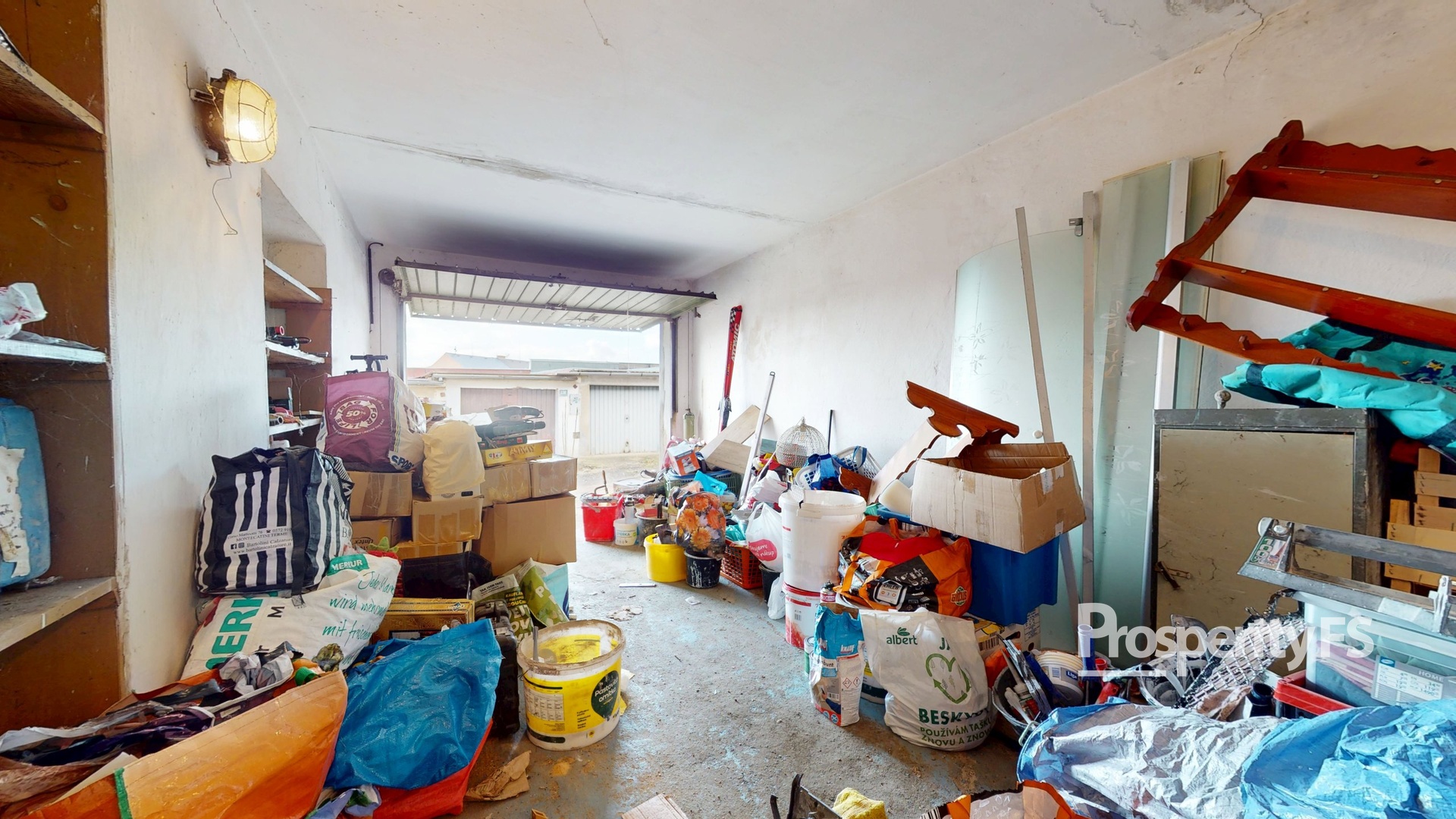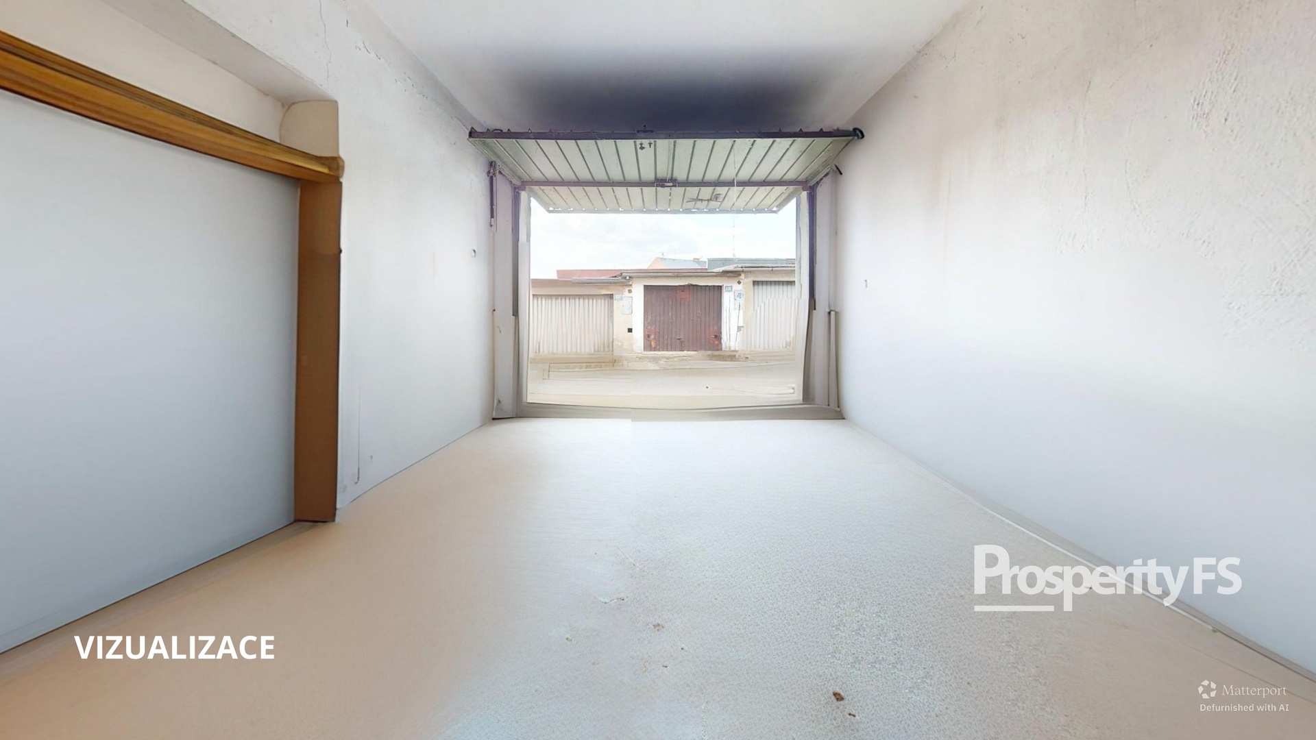Do garáže je zavedena elektřina, což umožňuje její využití nejen pro parkování automobilu či motocyklu, ale také jako praktický prostor pro uskladnění věcí. Vjezd je zajištěn plechovými vraty v hnědém provedení.