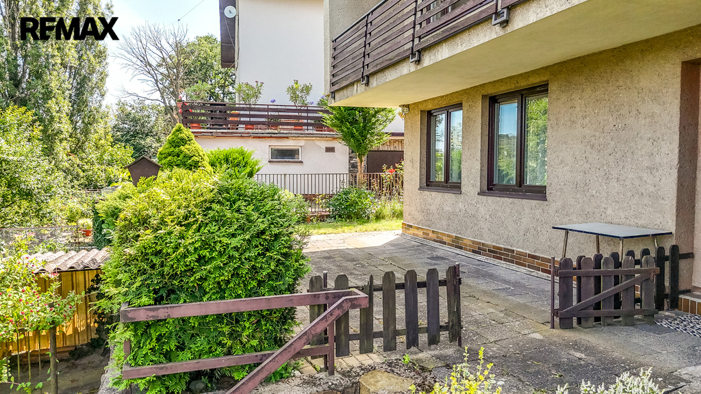 V přízemí domu se nachází další kuchyně, obývací pokoj, koupelna, toaleta, dvě obytné místnosti a technická místnost. Z tohoto patra se dostanete přímo na pečlivě udržovanou zahradu.