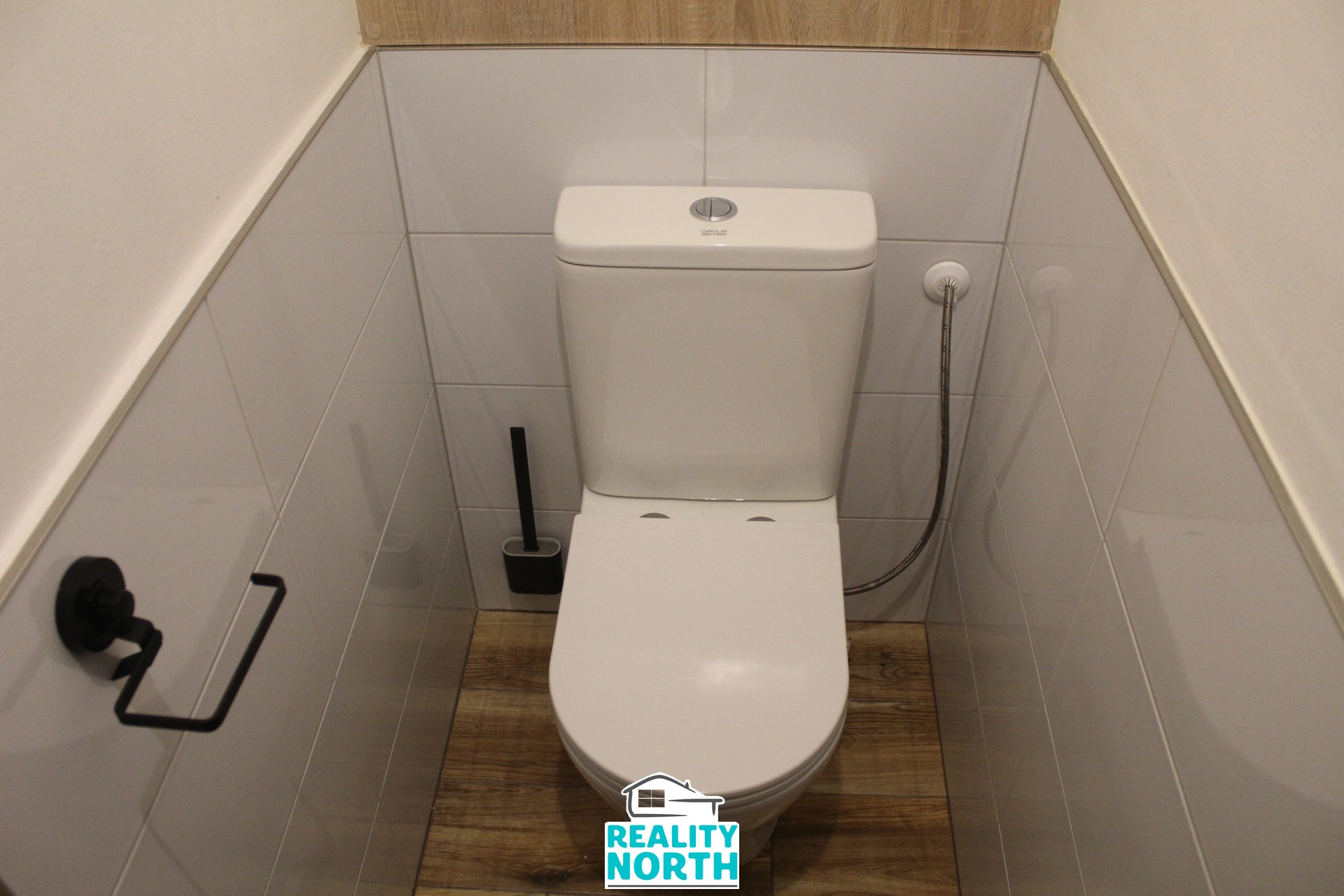 Dále je zde nové zděné koupelnové jádro s vanou a koupelnovým nábytkem. Toaleta je oddělená od koupelny.