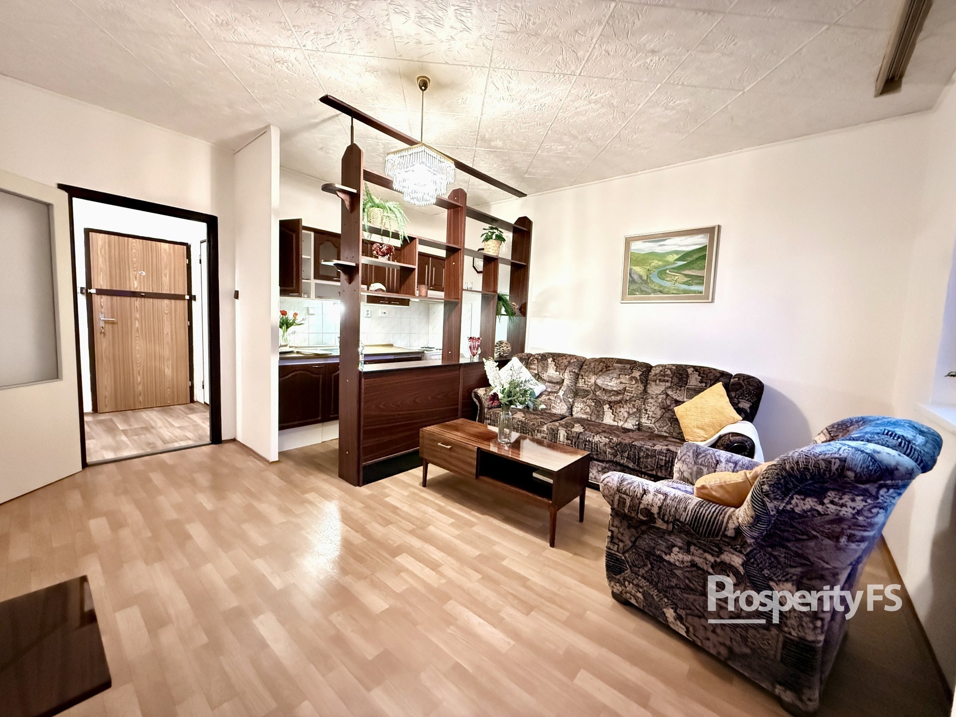 Byt je situovaný ve 2. patře udržovaného panelového domu s výtahem. Obě hlavní místnosti směřují do zeleného údolí a máte tak ničím nerušený výhled.