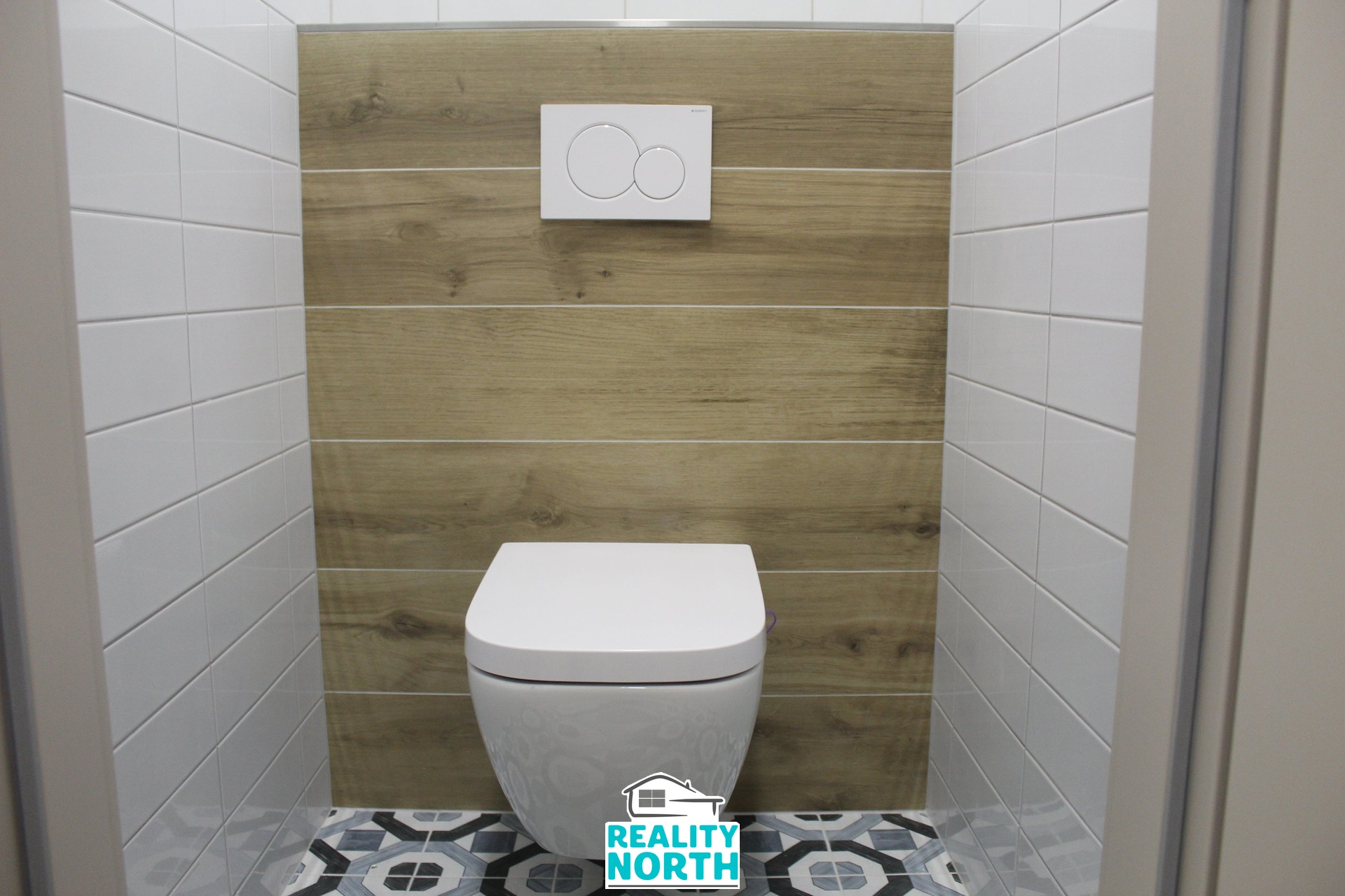 V koupelně a na WC je položena dlažba, v místnostech vinilová podlaha.