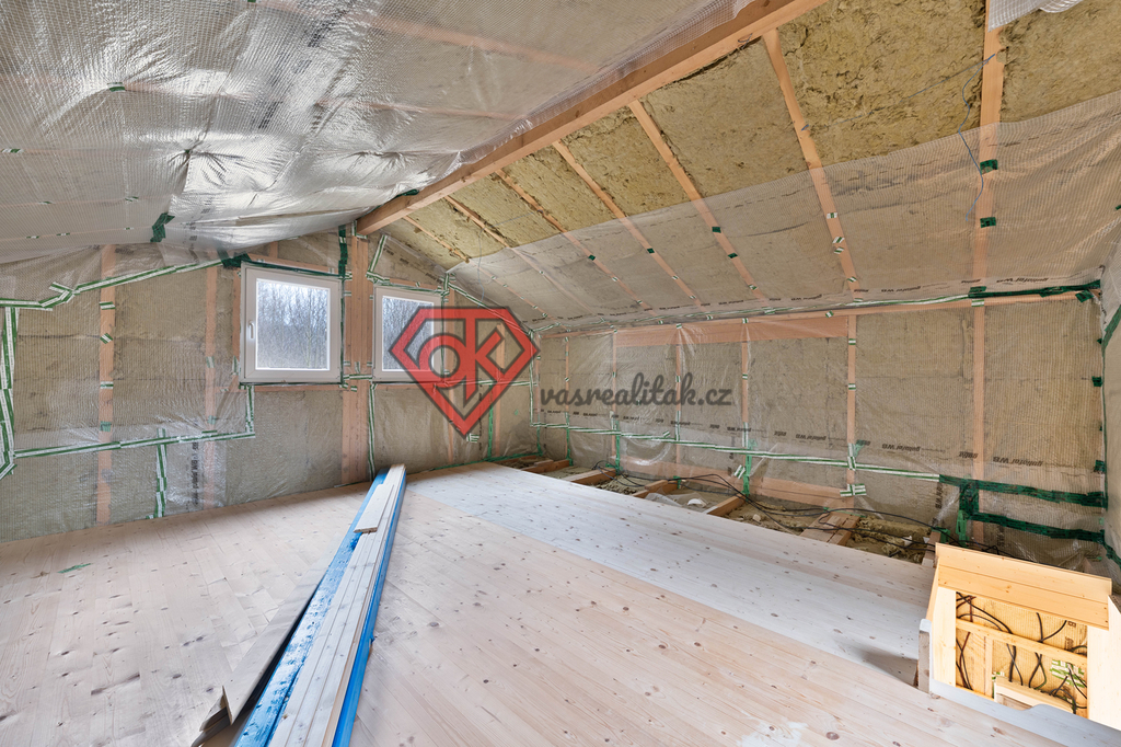- prozatím se jedná o jeden pokoj v přízemí s kuchyňským koutem, přípravu na koupelnu s toaletou a v prvním patře najdete druhý pokoj, který podle potřeby můžete zachovat, či rozdělit na dva.