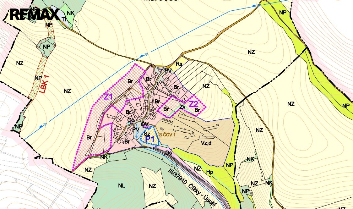 Územní plán: zastavitelná plocha - Br (označení lokalit Z1 )