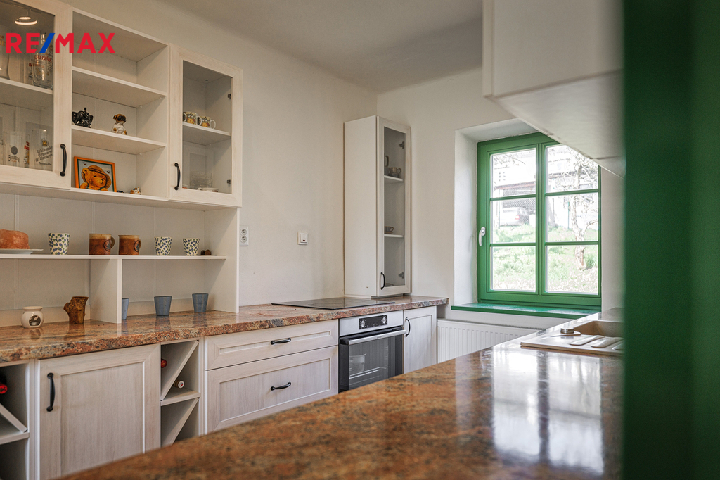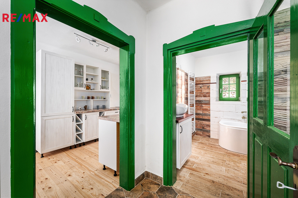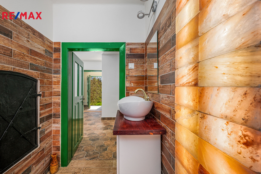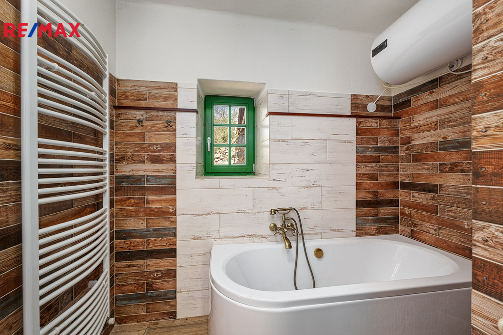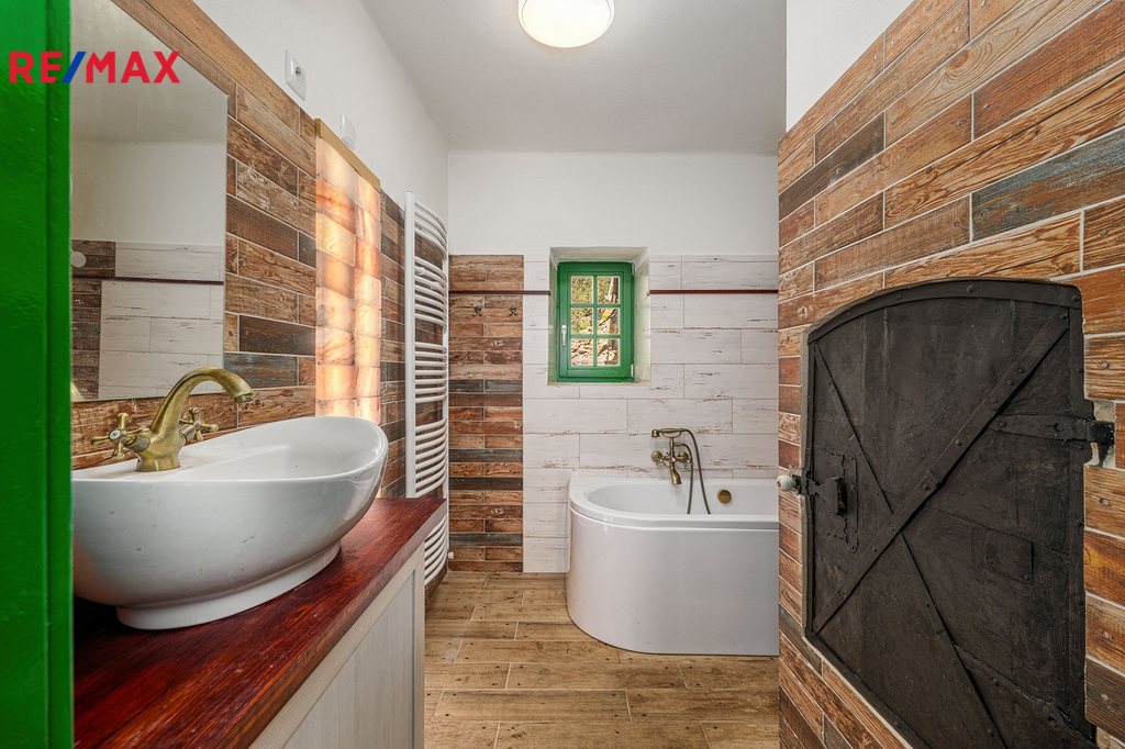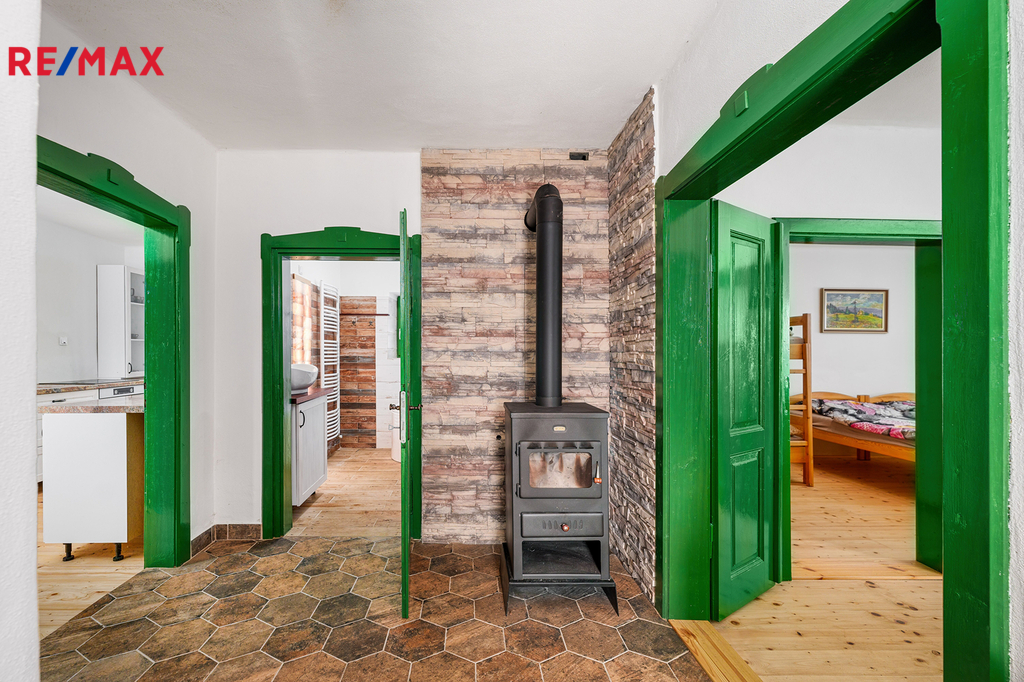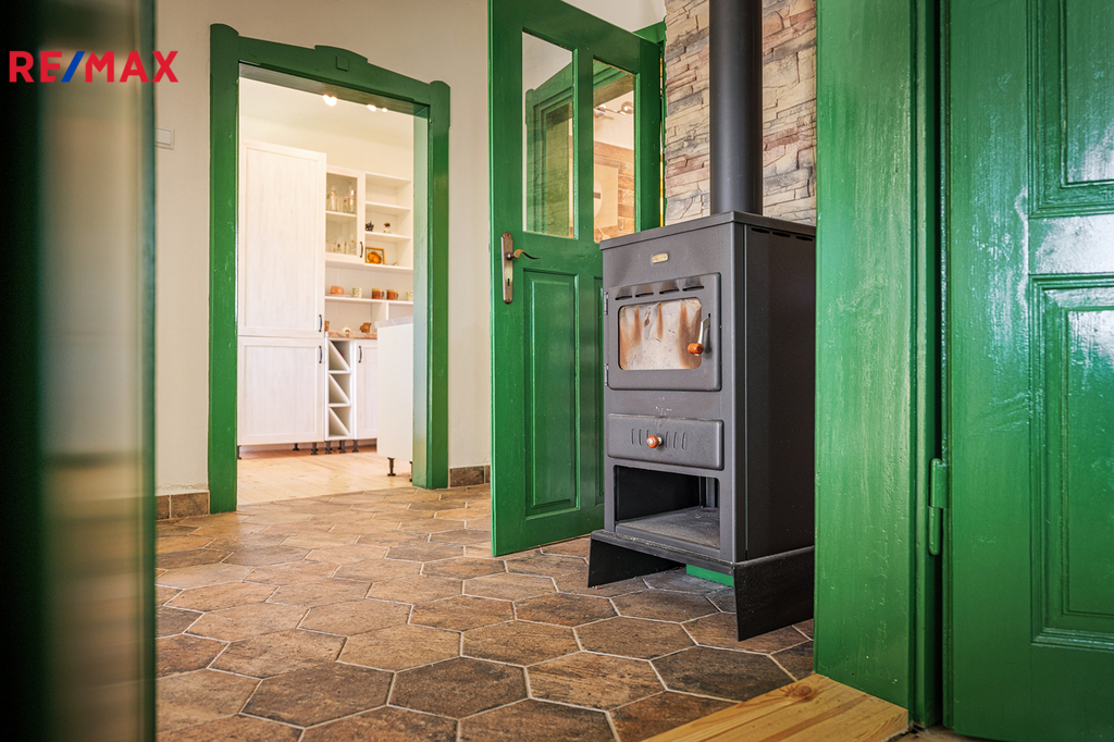 Interiér domu je vybaven novými dřevěnými podlahami a dlažbou, které dodávají prostoru teplý a útulný charakter. Nábytek z masivu podtrhuje rustikální atmosféru a zajišťuje dlouhou životnost. Nová izolační okna a dveře z masivu nejen zvyšují energetickou účinnost domu, ale také přispívají k jeho estetickému vzhledu. Vytápění je řešeno kamny s výměníkem a novými radiátory, což zajišťuje příjemné teplo i v chladnějších měsících. V domě se nachází i elektrokotel, díky kterému se v nemovitosti dá udržovat teplo i když budete mimo nemovitost. Koupelna v rustikálním stylu je mimo klasických světel vybavena i světly zapuštěnými za solné cihly, které vytvářejí jedinečnou a relaxační atmosféru.