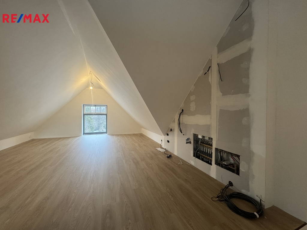 Pronájem podkrovního komerčního prostoru, cca 100 m² – reprezentativní kancelář / ateliér v historické vile, centrum Valašského Meziříčí