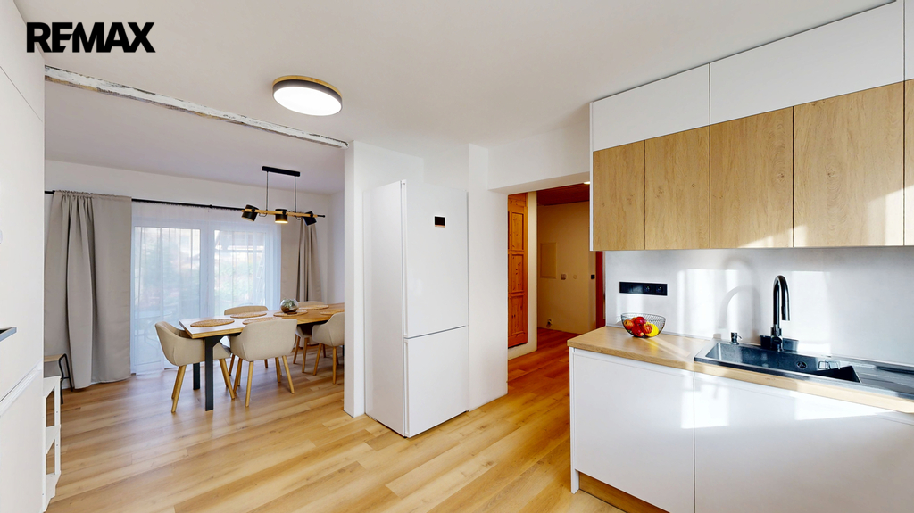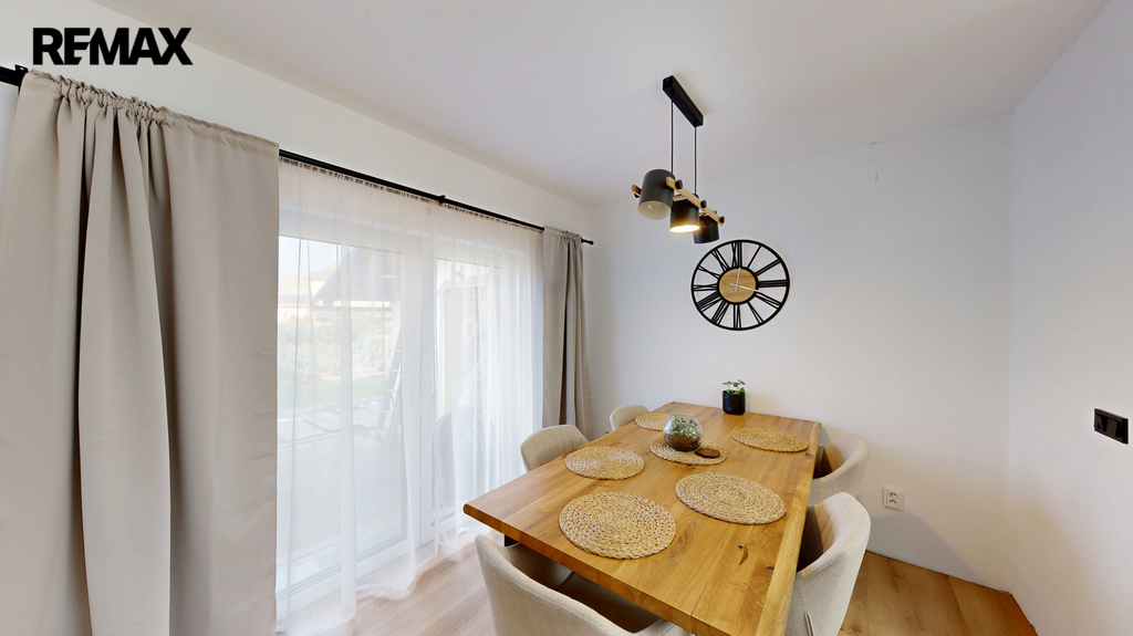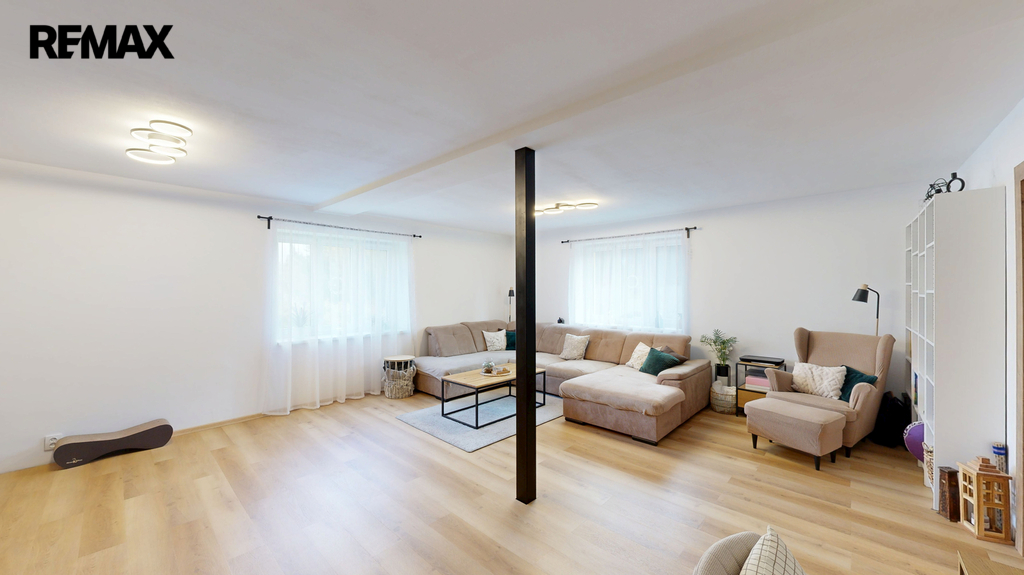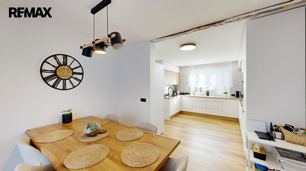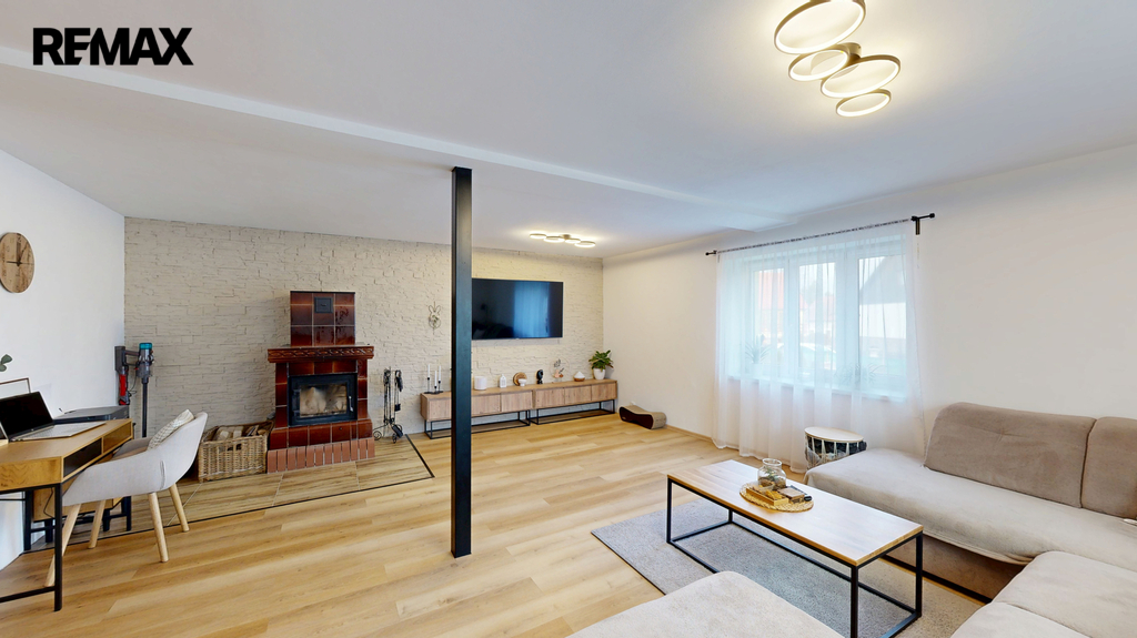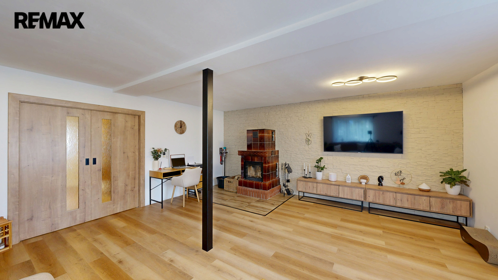 Dům disponuje čtyřmi samostatnými pokoji, oddělenou jídelnou a velkou kuchyní, což poskytuje dostatek prostoru pro vícečlennou rodinu. V přízemí se nachází obytná zóna domu. Je zde moderní kuchyně propojená s jídelnou, odkud vedou francouzská okna na terasu a do zahrady. Pokud rádi přijímáte návštěvy, oceníte opravdu prostorný obývací pokoj, kde si můžete užívat společné chvíle u kachlových krbových kamen, která dodají prostoru jedinečný ráz. Díky podlahovému vytápění bude váš domov vždy příjemný, ať už venku panuje jakékoli počasí.