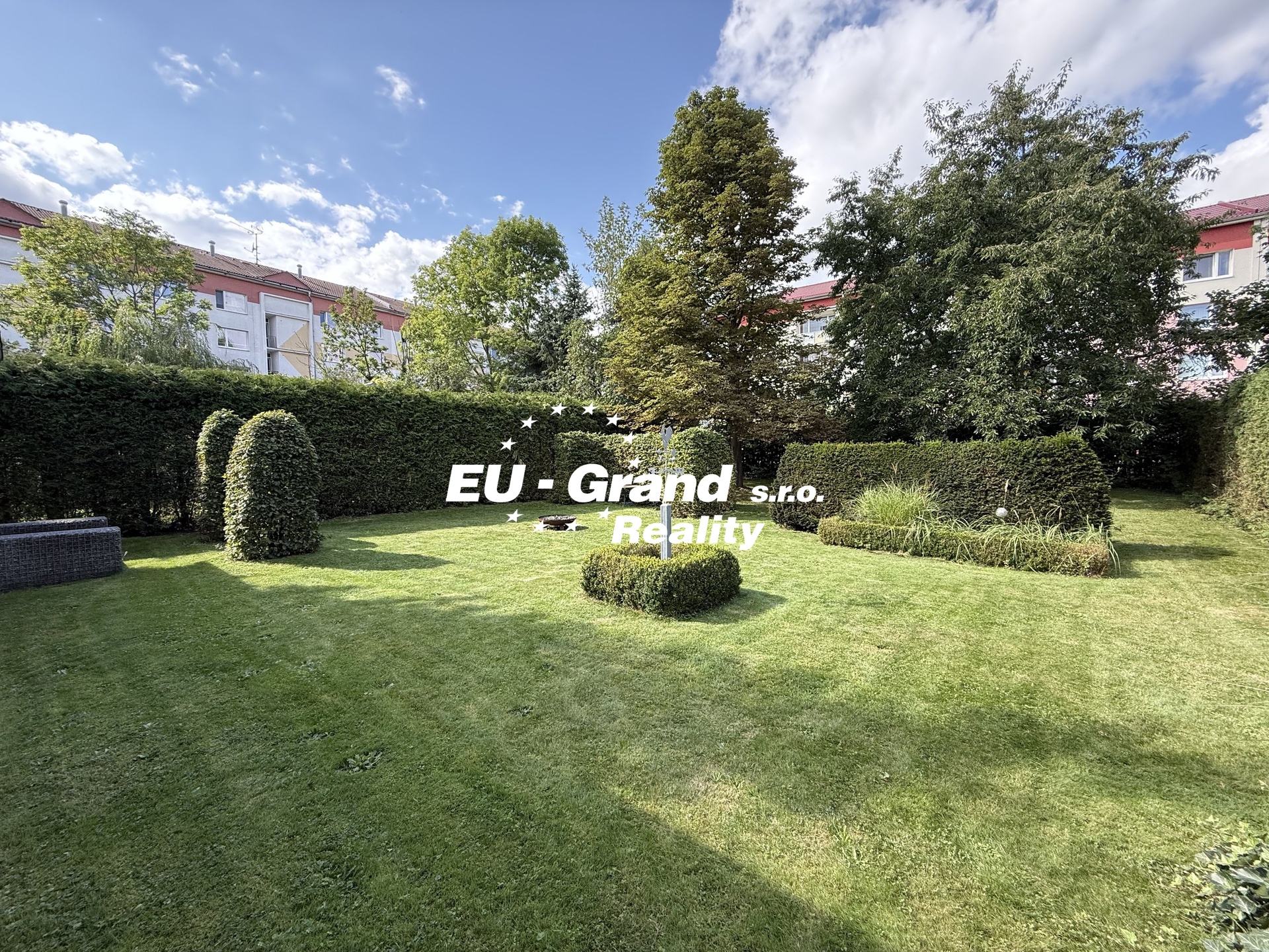Udržovaná zahrada o rozloze cca 1 500 m² poskytuje dostatek prostoru pro odpočinek, relaxaci i rodinné zázemí