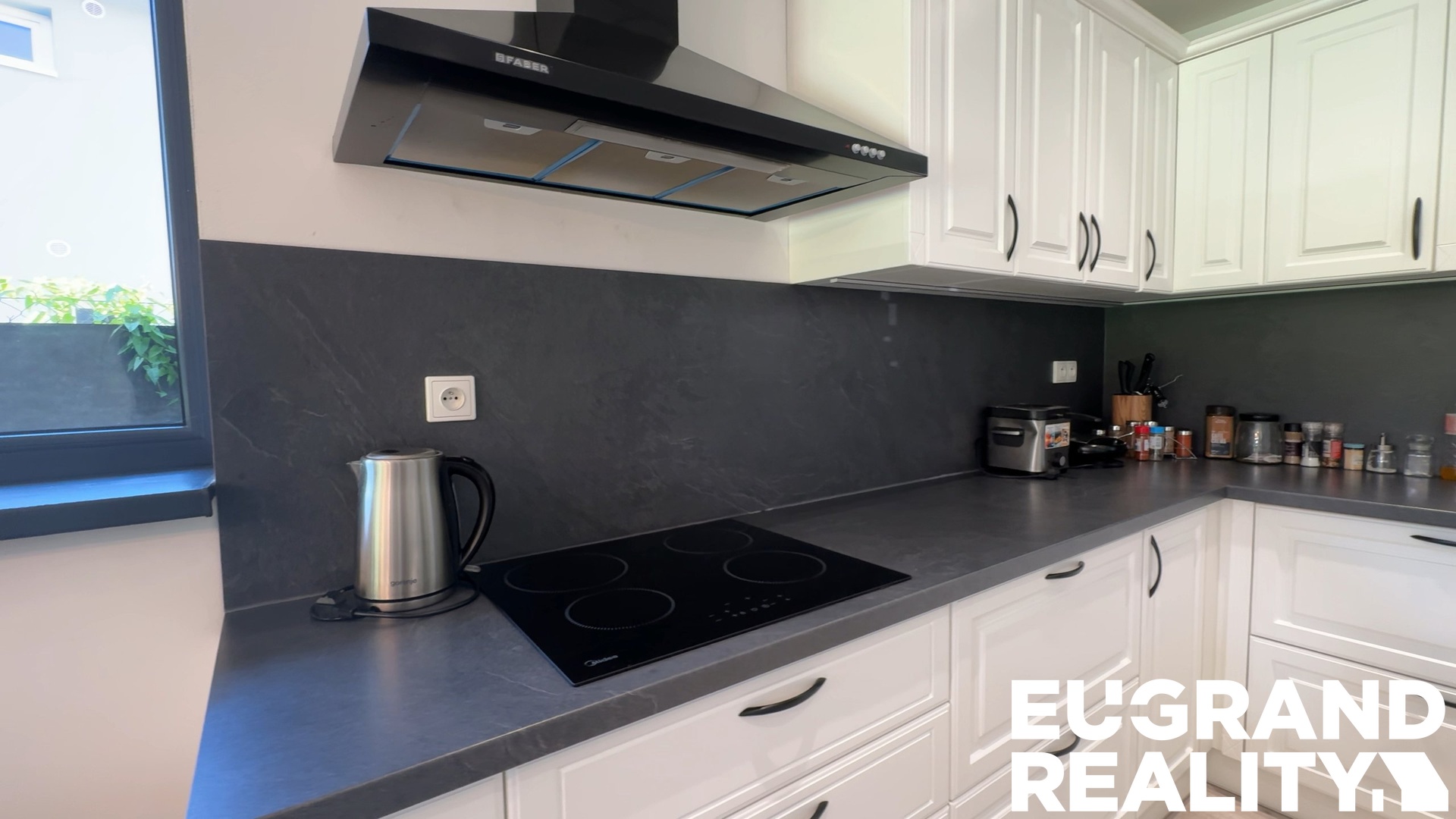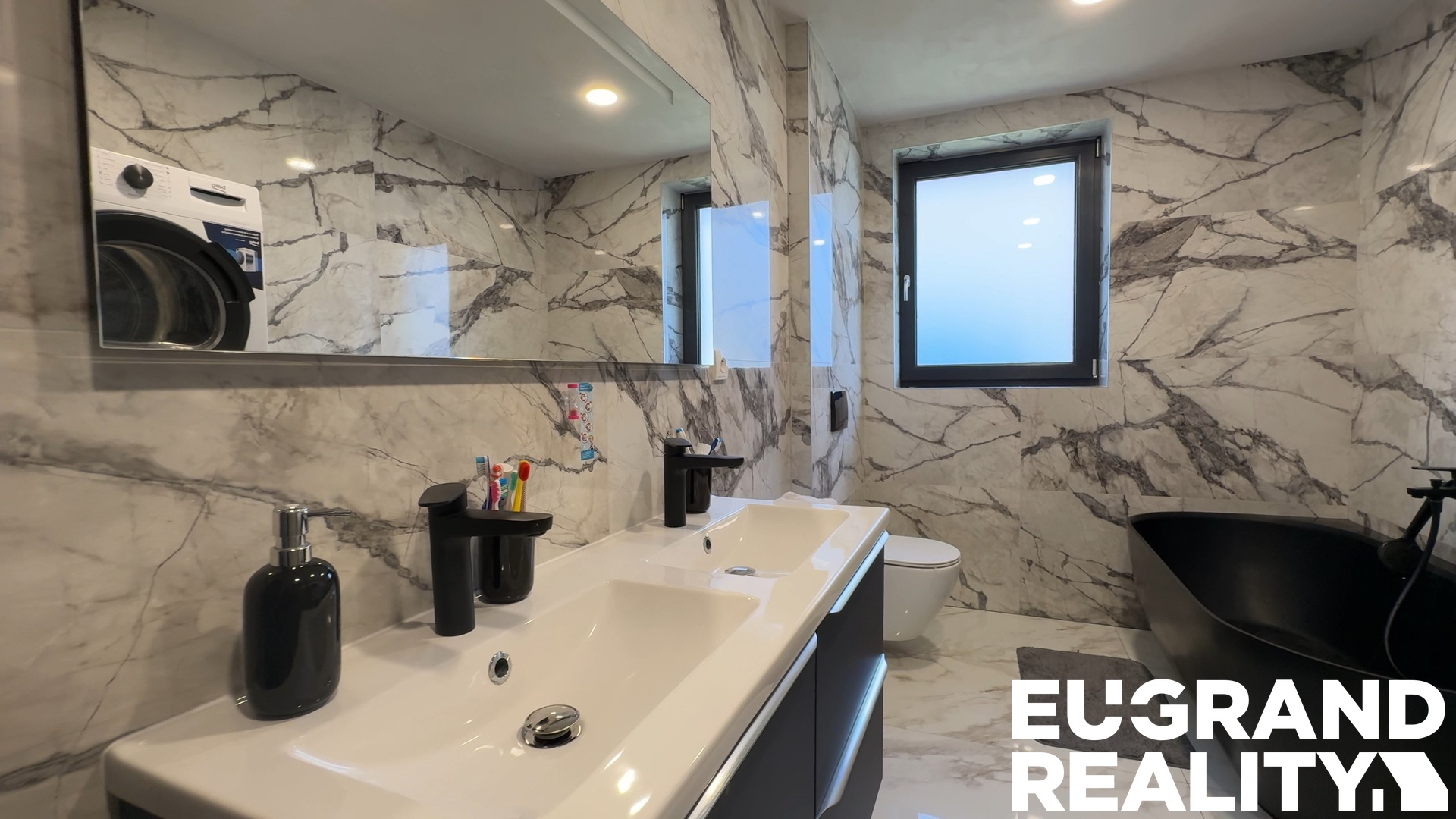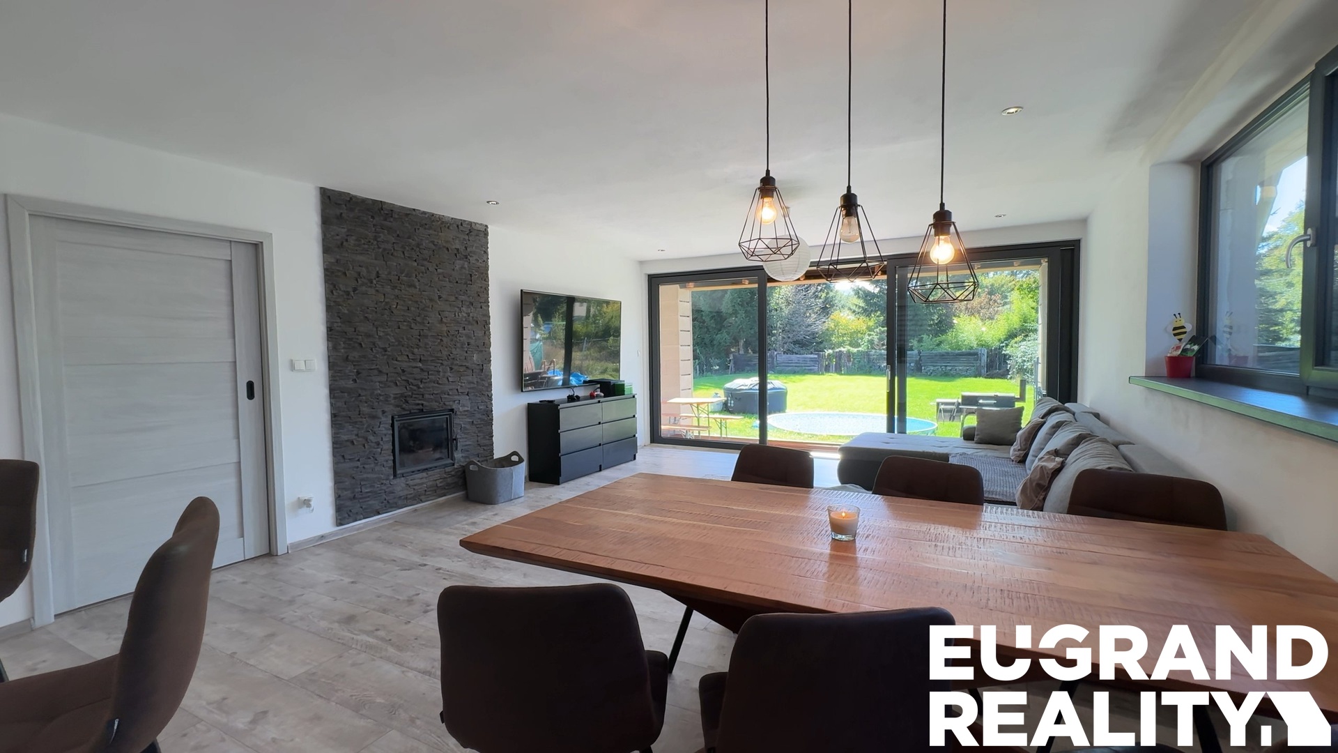 Dům je ve finální fázi dokončení – zbývá pouze dokončit fasádu, v současnosti je objekt v ochranné lepence. Interiér je kompletně zařízený a prodává se včetně vybavení, což umožňuje okamžité nastěhování bez dalších investic.