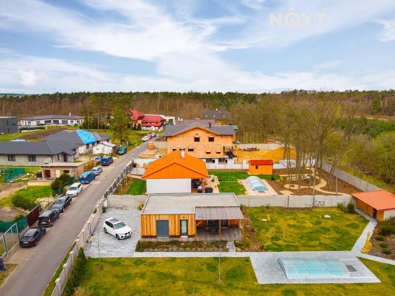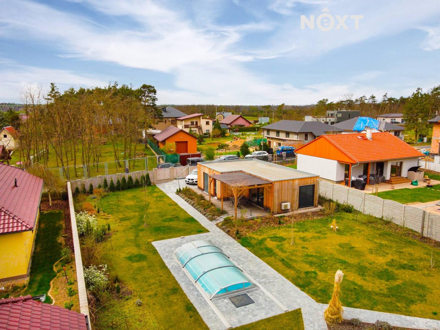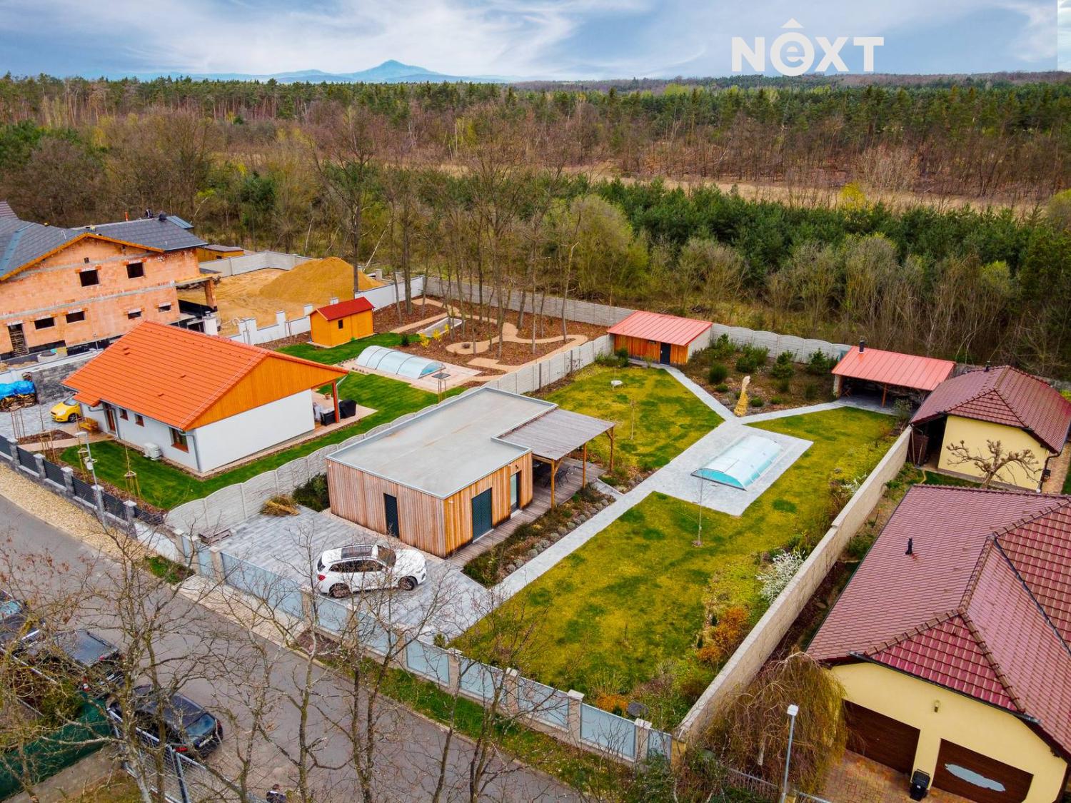 Tento dům byl dokončen a zkolaudován v roce 2022 a je vhodný jak pro trvalé bydlení, tak pro rodinnou rekreaci v klidném prostředí. K dispozici je rozlehlý pozemek o rozloze 980 m² s dobře udržovanou zahradou, včetně moderního zavlažovacího systému. Na zahradě najdete příjemnou terasu ve stínu a kryté posezení, ideální pro relaxaci po náročném dni. Vaši přátelé mohou využít krytý venkovní bazén, grilovací koutek nebo přenocovat v hostinském domku. Pozemek nabízí dostatek parkovacích míst pro tři auta, nabíjení elektromobilu a je chráněn kamerovým systémem. Velkou výhodou je vlastní studna a nádrž na dešťovou vodu, které minimalizují náklady na zavlažování zahrady. Obytný prostor je výborně zvukově a tepelně izolován. Velká trojskla zajišťují nejen izolaci, ale i dostatek světla v domě. Interiér je laděn do světlých tónů, minimalistický design a chytré uspořádání prostoru umožňují plynulý přechod mezi vnitřním a vnějším prostředím. Můžete si užívat krásy okolní krajiny přímo z obývacího pokoje. Dům je obložen dřevem, což mu dodává jedinečný charakter, doplněný zelení. Po vstupu vás uvítá světlá chodba vedoucí do obývacího prostoru s moderní kuchyní, perfektní pro rodinné setkání. Dále jsou zde dva dětské pokoje a ložnice. Dům obsahuje také zádveří, technickou místnost a úklidovou komoru. Koupelna je vybavena sprchovým koutem a je spojena s toaletou. Obývací pokoj má klimatizaci s funkcí topení a celý dům je vybaven podlahovým vytápěním. Okna s venkovními roletami nabízejí nádherný výhled do zahrady i na České středohoří. Topení a ohřev vody zajišťuje centrální elektrický kotel. Dům je připojen na obecní vodovod a kanalizaci.