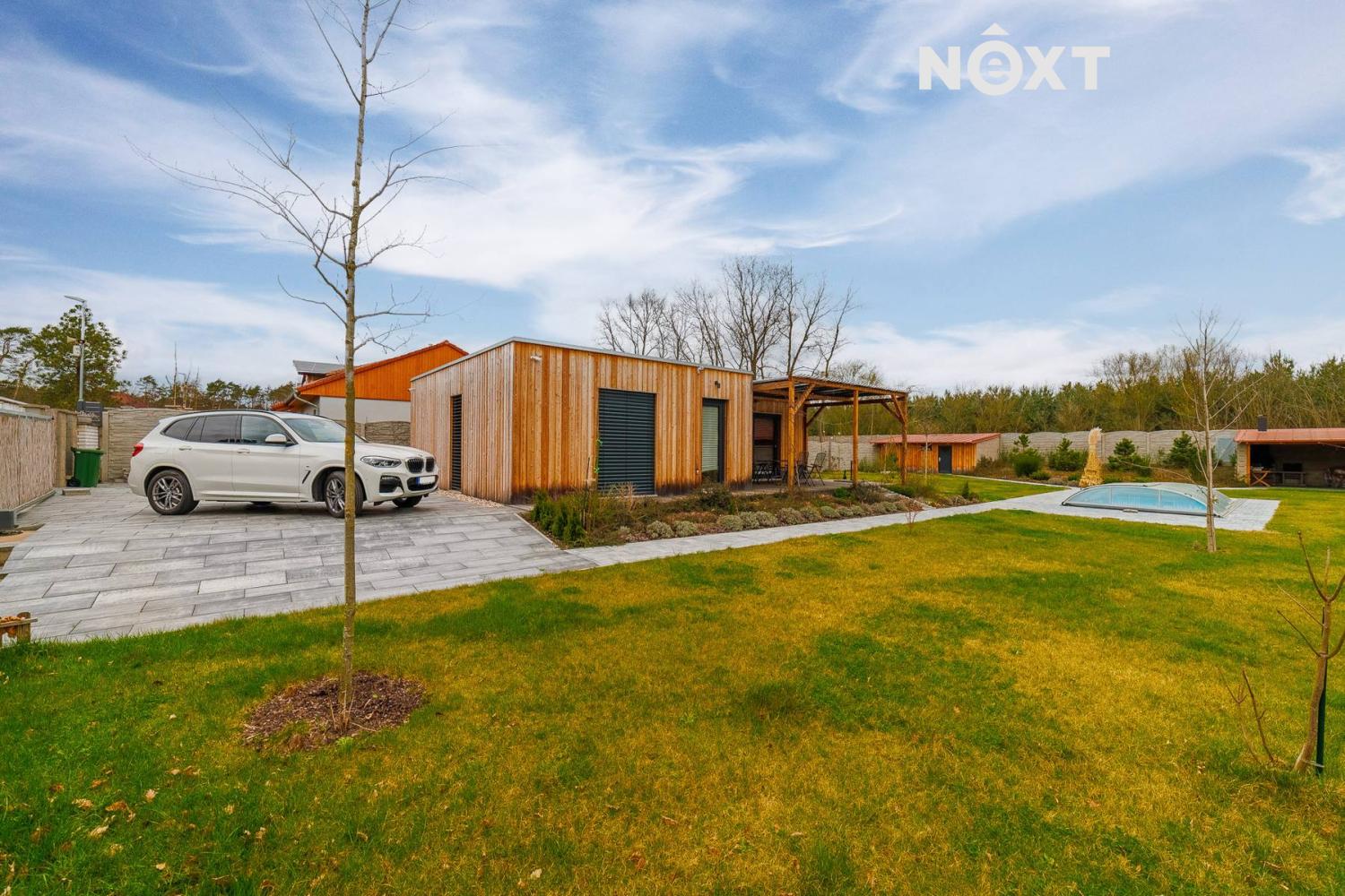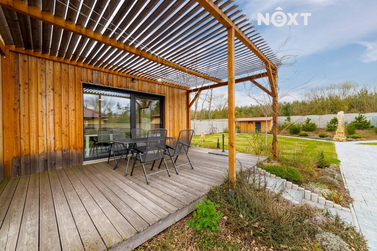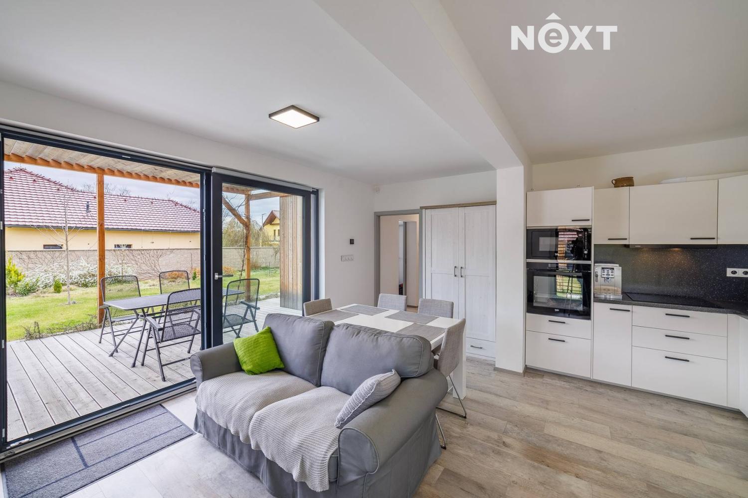 Tento dům byl dokončen a zkolaudován v roce 2022 a je vhodný jak pro trvalé bydlení, tak pro rodinnou rekreaci v klidném prostředí. K dispozici je rozlehlý pozemek o rozloze 980 m² s dobře udržovanou zahradou, včetně moderního zavlažovacího systému. Na zahradě najdete příjemnou terasu ve stínu a kryté posezení, ideální pro relaxaci po náročném dni. Vaši přátelé mohou využít krytý venkovní bazén, grilovací koutek nebo přenocovat v hostinském domku. Pozemek nabízí dostatek parkovacích míst pro tři auta, nabíjení elektromobilu a je chráněn kamerovým systémem. Velkou výhodou je vlastní studna a nádrž na dešťovou vodu, které minimalizují náklady na zavlažování zahrady. Obytný prostor je výborně zvukově a tepelně izolován. Velká trojskla zajišťují nejen izolaci, ale i dostatek světla v domě. Interiér je laděn do světlých tónů, minimalistický design a chytré uspořádání prostoru umožňují plynulý přechod mezi vnitřním a vnějším prostředím. Můžete si užívat krásy okolní krajiny přímo z obývacího pokoje. Dům je obložen dřevem, což mu dodává jedinečný charakter, doplněný zelení. Po vstupu vás uvítá světlá chodba vedoucí do obývacího prostoru s moderní kuchyní, perfektní pro rodinné setkání. Dále jsou zde dva dětské pokoje a ložnice. Dům obsahuje také zádveří, technickou místnost a úklidovou komoru. Koupelna je vybavena sprchovým koutem a je spojena s toaletou. Obývací pokoj má klimatizaci s funkcí topení a celý dům je vybaven podlahovým vytápěním. Okna s venkovními roletami nabízejí nádherný výhled do zahrady i na České středohoří. Topení a ohřev vody zajišťuje centrální elektrický kotel. Dům je připojen na obecní vodovod a kanalizaci.