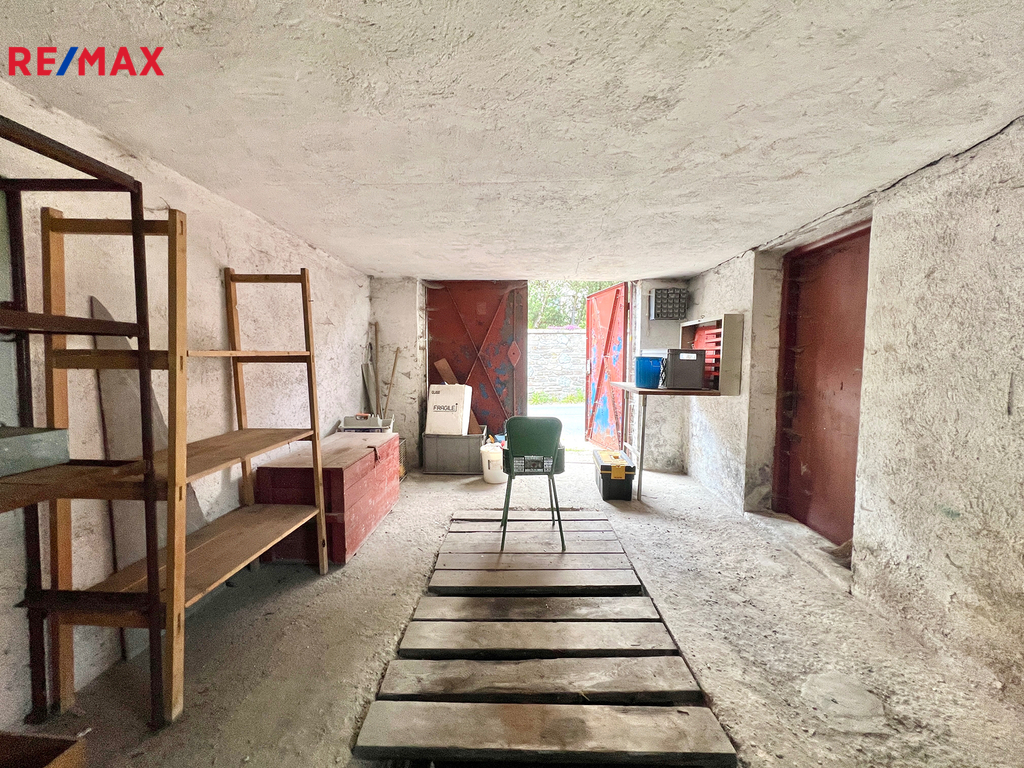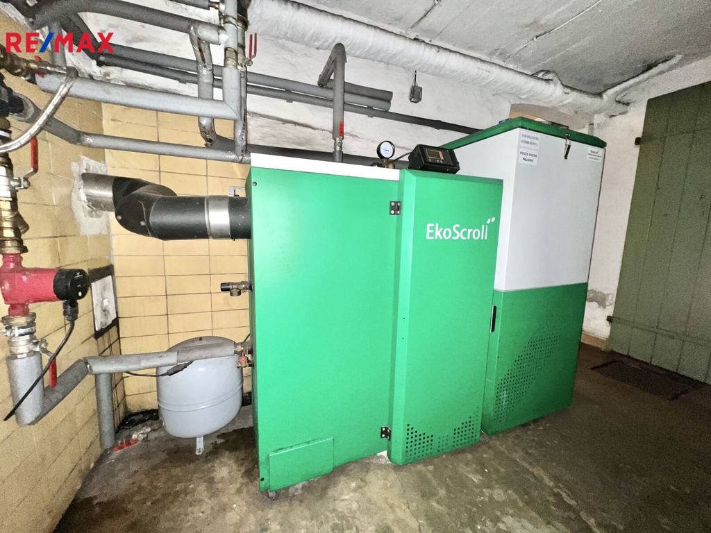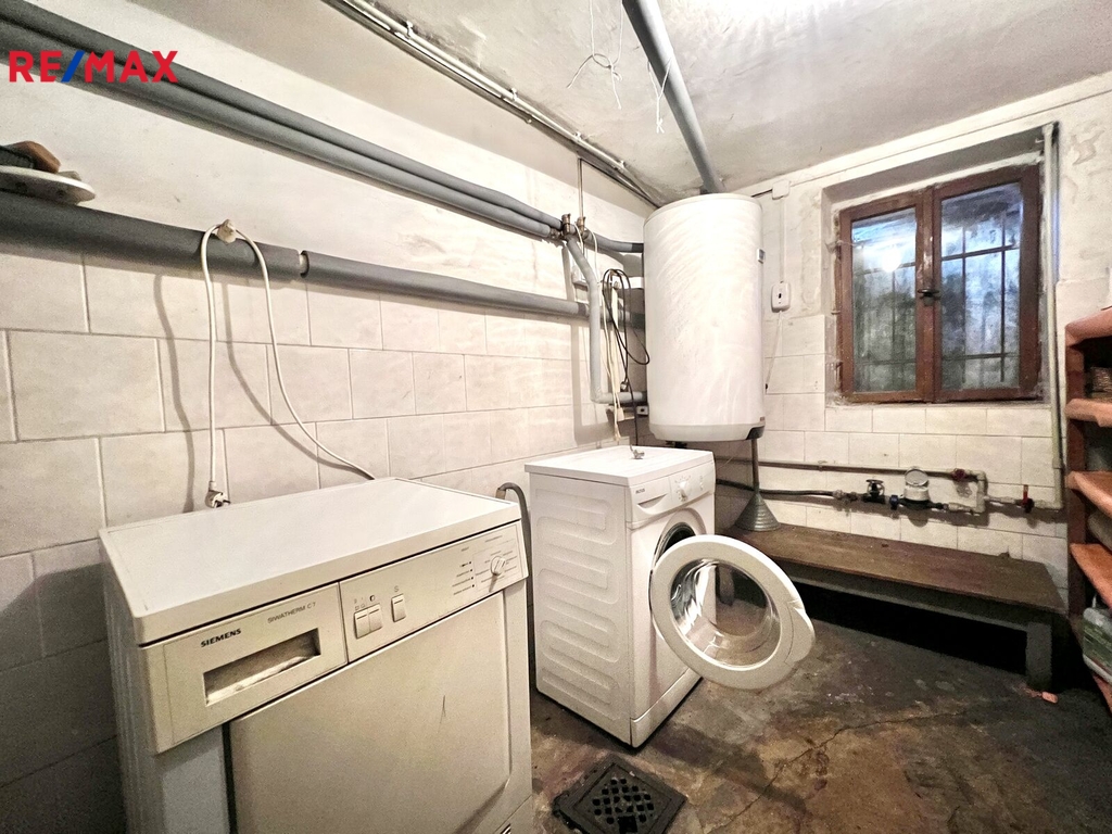 Ve sklepě je pračka a bojler, kotel na tuhá paliva, spižírna a komora na uhlí.