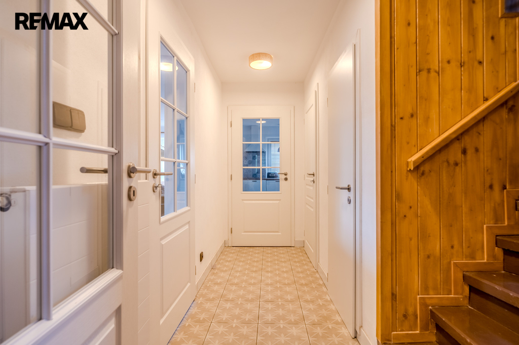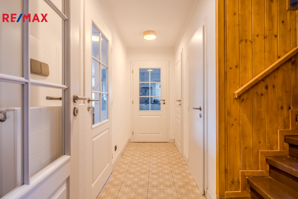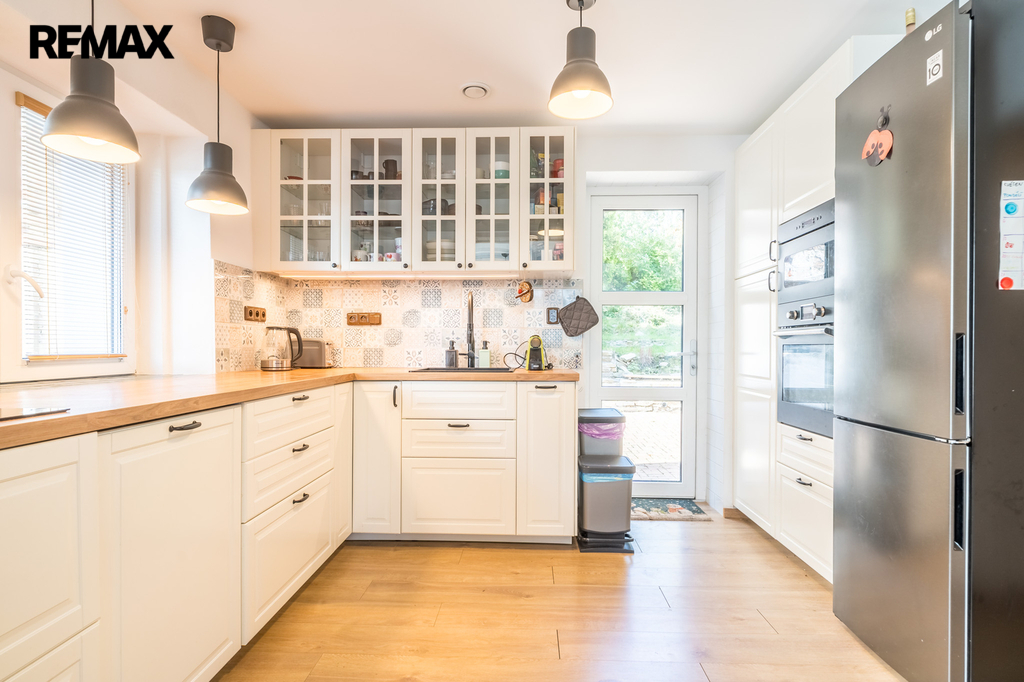 V přízemí vás přivítá kuchyň s novou linkou (sklokeramická indukční deskou, elektrická trouba, mikrovlnka, myčka i digestoř). Kuchyně disponuje podlahovým vytápěním a přímým vstupem na zahradu, což z ní činí ideální místo pro rodinný život i letní posezení. Na kuchyň navazuje obývací pokoj. V přízemí se nachází také koupelna s vanou, umyvadlem, topným žebříkem a toaletou. Z chodby se dostaneme do komory, a dále do prostorného sklepa o výměře 39 m², kde je umístěn zcela nový záložní elektrokotel.
