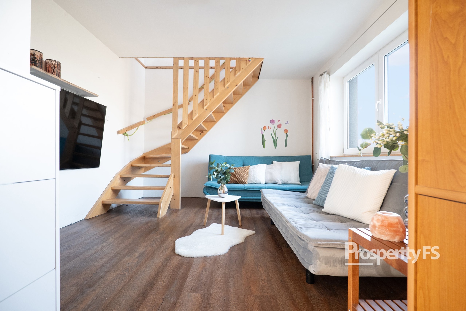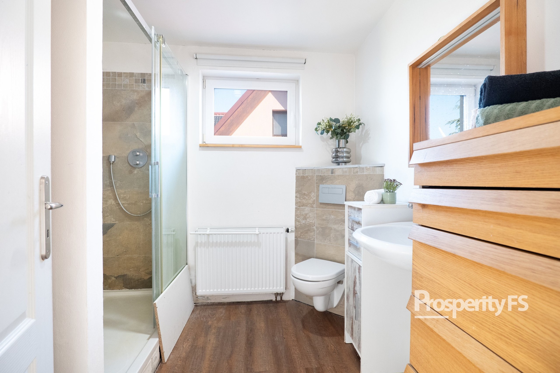 - 1.NP koupelna + WC, hlavní ložnice a obývací pokoj
