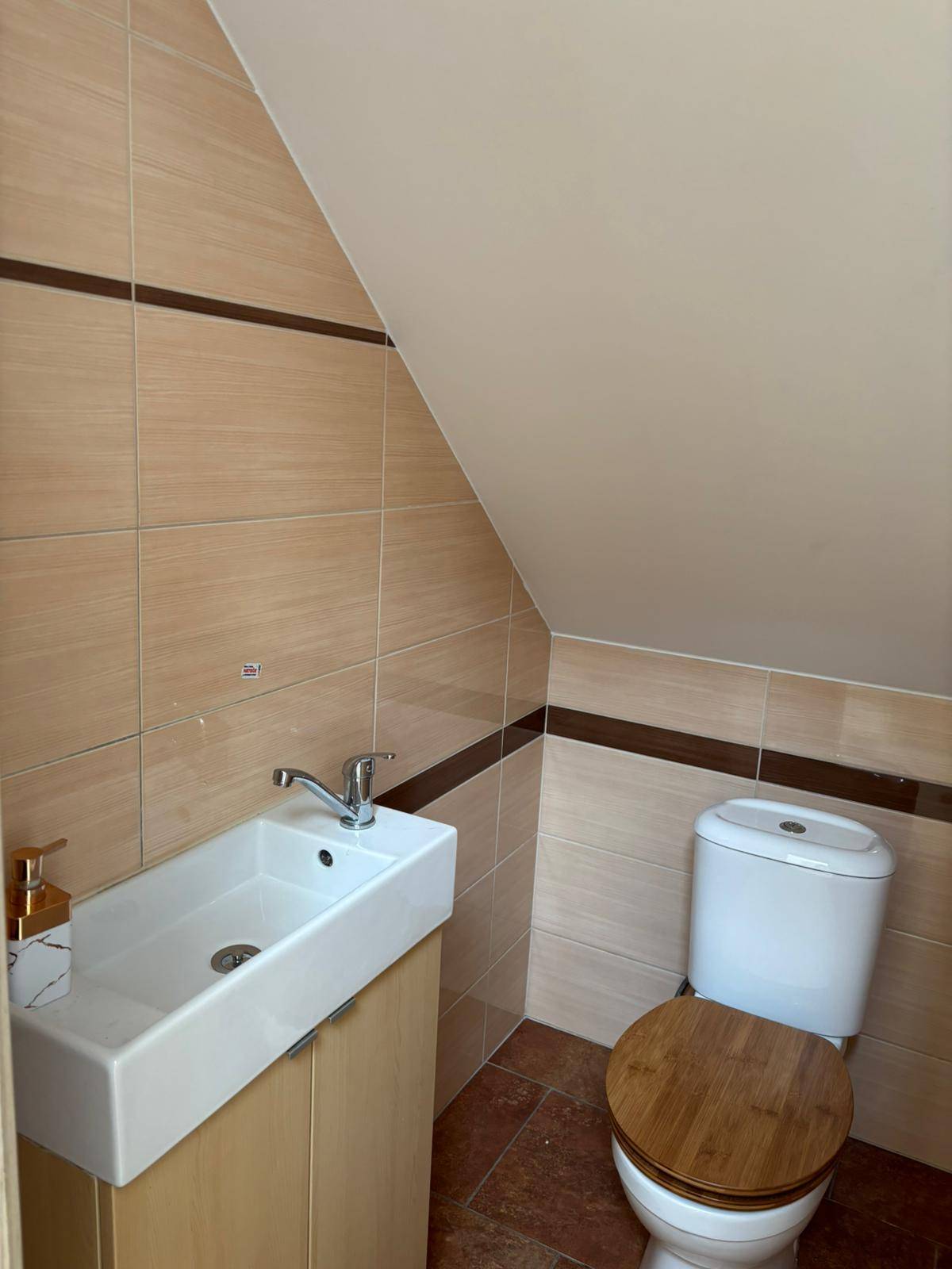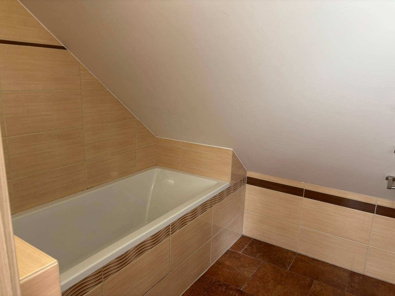 V přízemí domu se nachází vstupní hala a chodba, ze které je přístup do koupelny vybavené rohovou vanou, sprchovým koutem a toaletou. Dále zde naleznete prostornou kuchyni plynule navazující na obývací pokoj, ze kterého je vstup do dalšího samostatného pokoje. Dispozice přízemí tak nabízí pohodlné zázemí pro každodenní rodinný život.