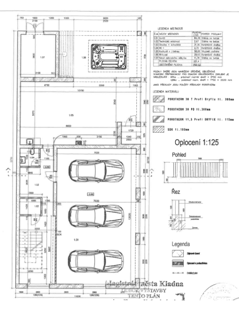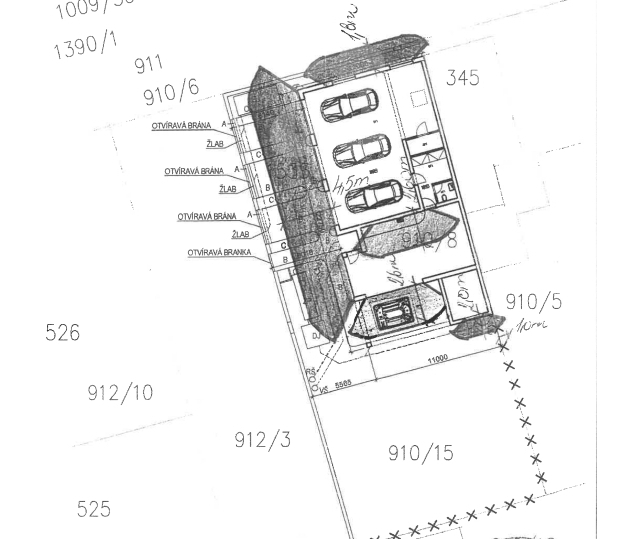 Vnitřní parkování pro 3 auta a další 3 místa pro parkování venku
