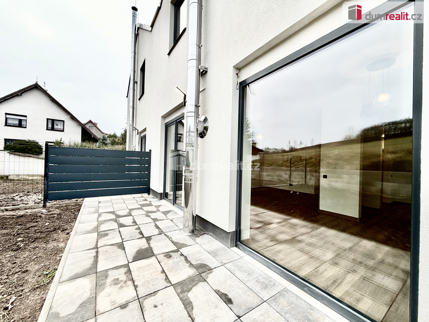 Exteriér domu nabízí dvě parkovací stání před domem ze zámkové betonové dlažby a terasu z betonové dlažby ideální pro venkovní posezení a relaxaci. Nemovitost je napojena na obecní vodovod, kanalizaci a elektřinu 230 V i 400 V.
