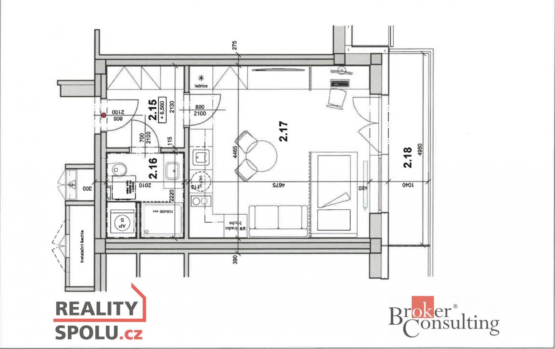 - Celková plocha: 29,54 m² (plus balkon 5,13 m²) + sklep 3,17m²